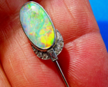 EXCITING NATURAL EARTH-MINED OPAL DIAMOND PLATINUM DECO STATEMENT PIN.