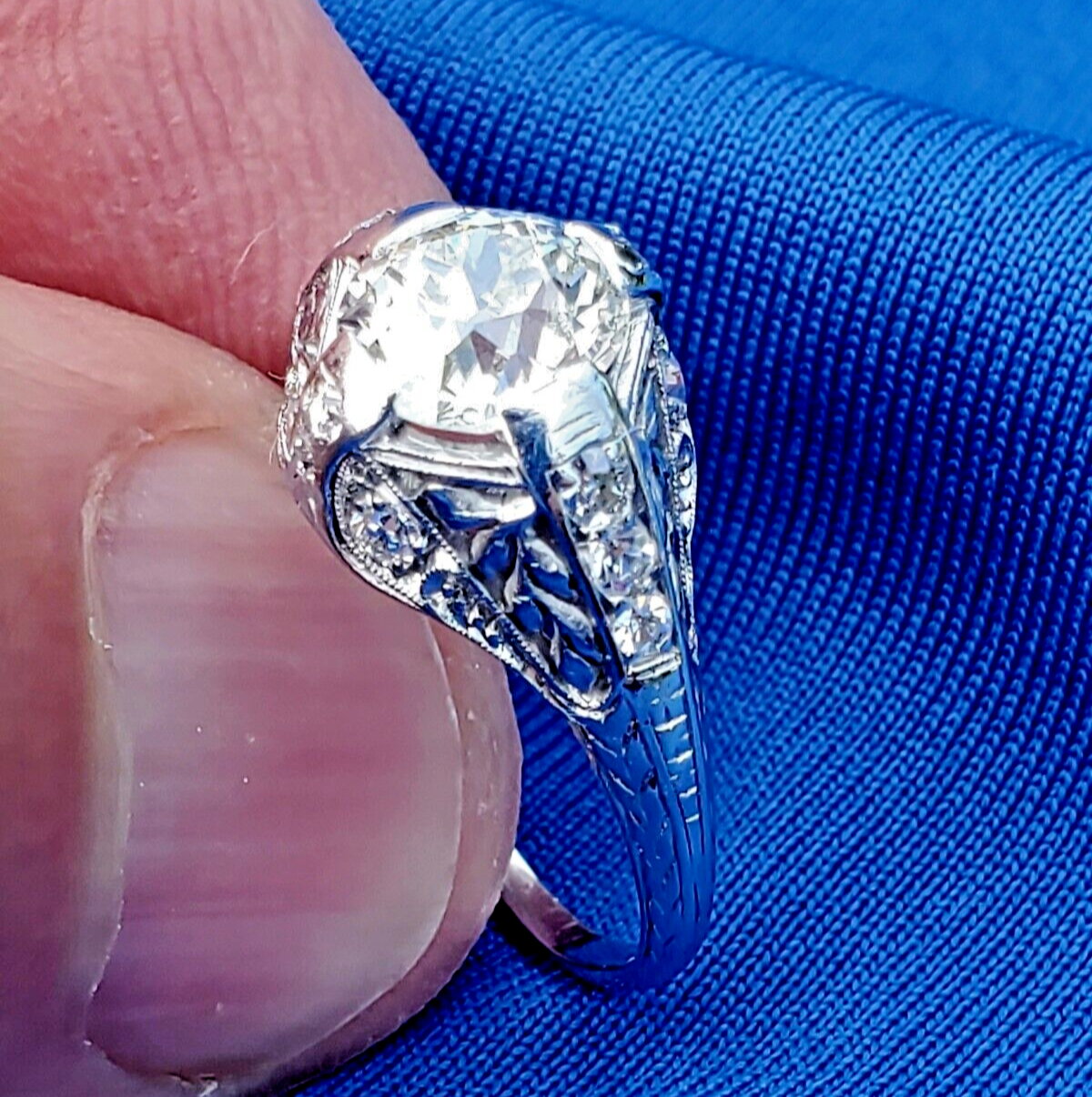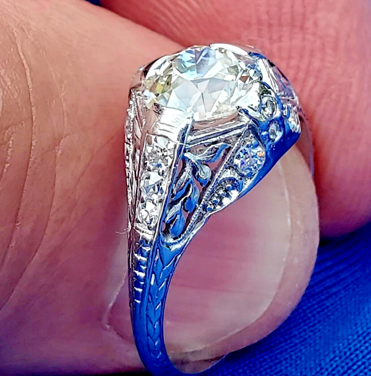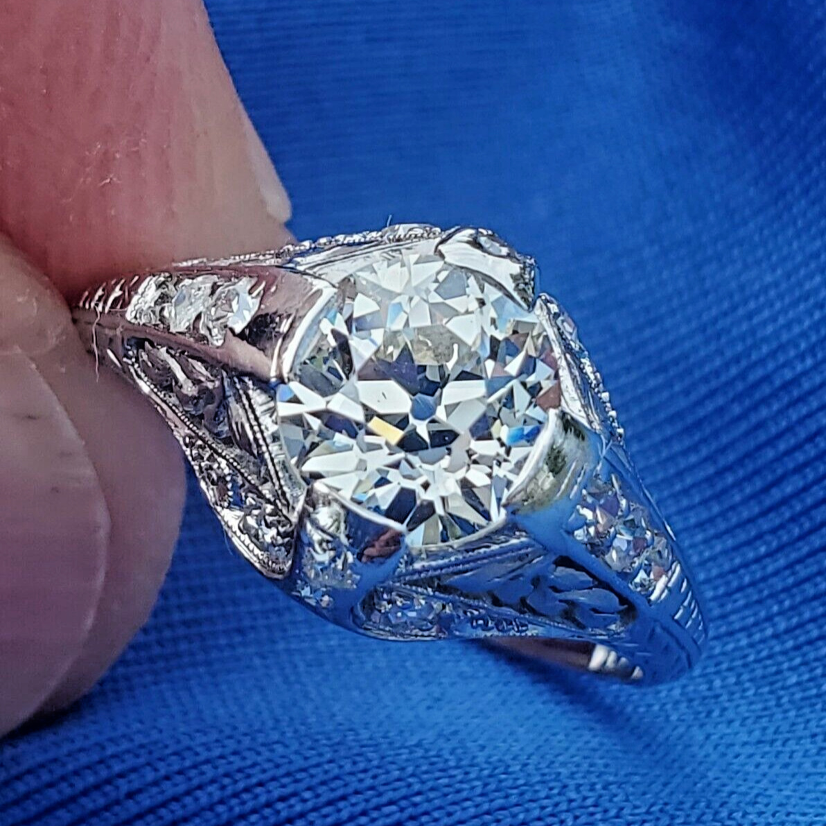 Earth mined Diamond 1.55 carat Deco Engagement Ring Antique Platinum Solitaire