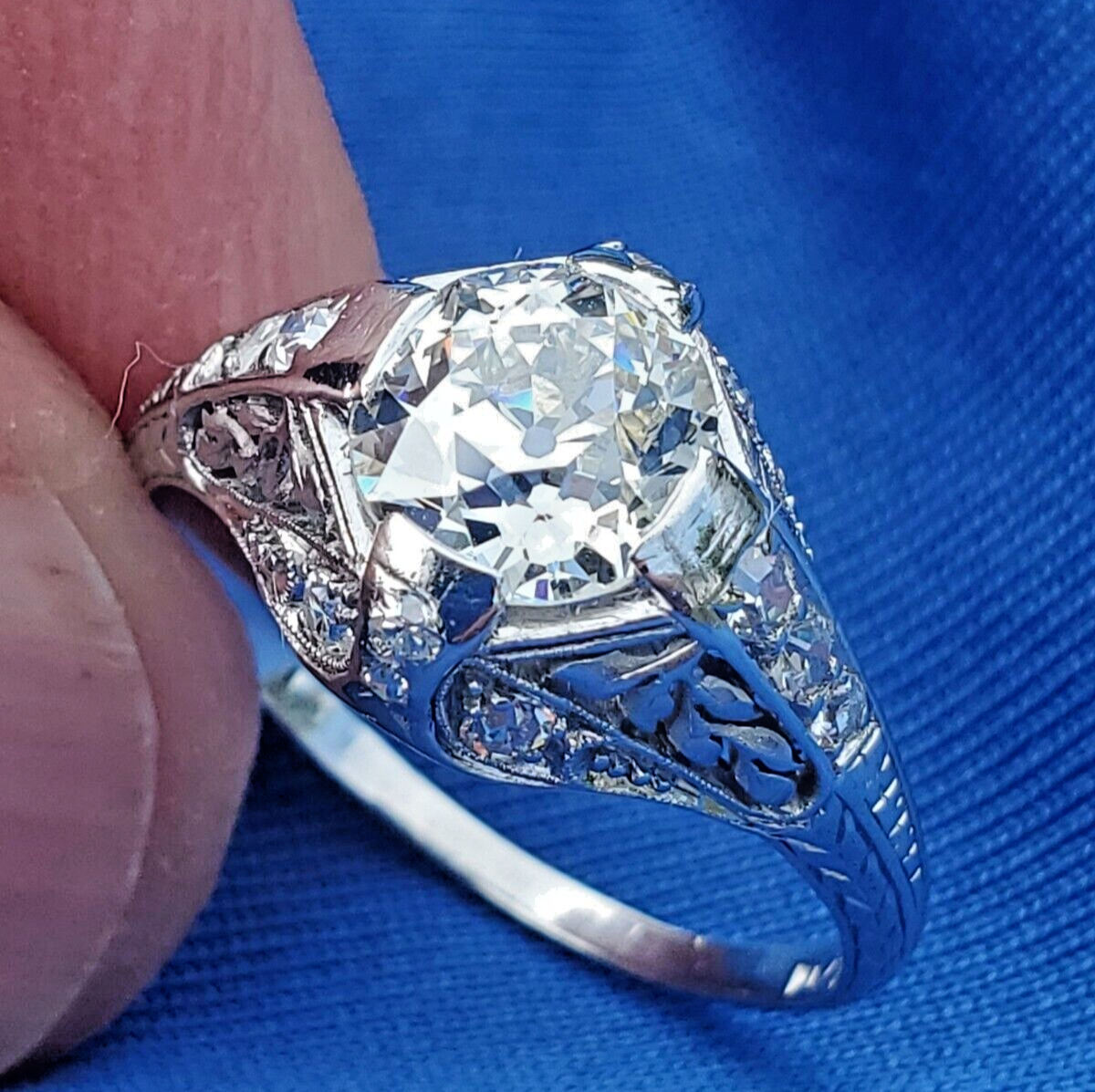 - Earth mined Diamond 1.55 carat Deco Engagement Ring Antique Platinum Solitaire