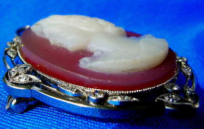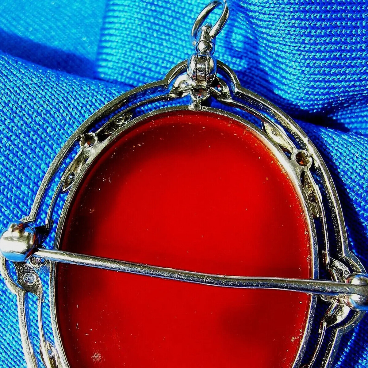 Special antique deco roaring 20s carnelian platinum diamond hard-stone brooch.