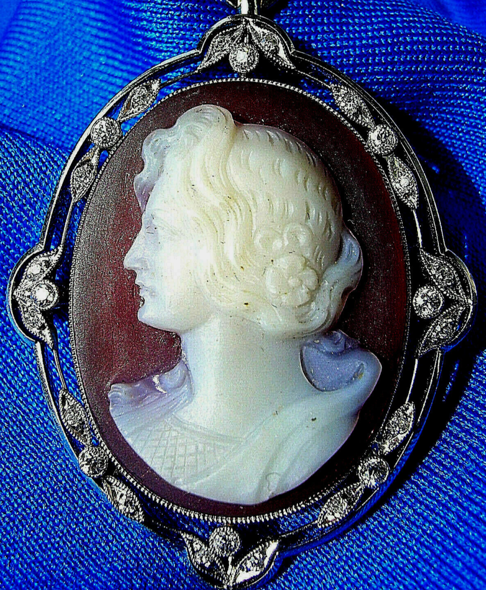- Earth mined Diamond Art Deco Pendant Antique Hardstone Medallion Platinum Brooch