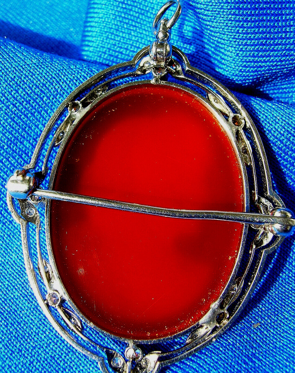 Earth mined Diamond Art Deco Pendant Antique Hardstone Medallion Platinum Brooch