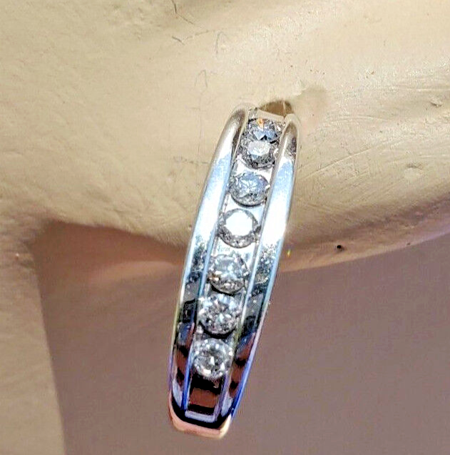 - Earth mined Diamond Bar European Style HUGGIE Earrings Channel 14k White Gold