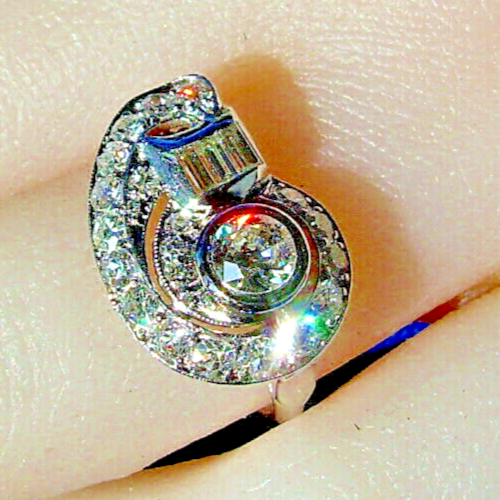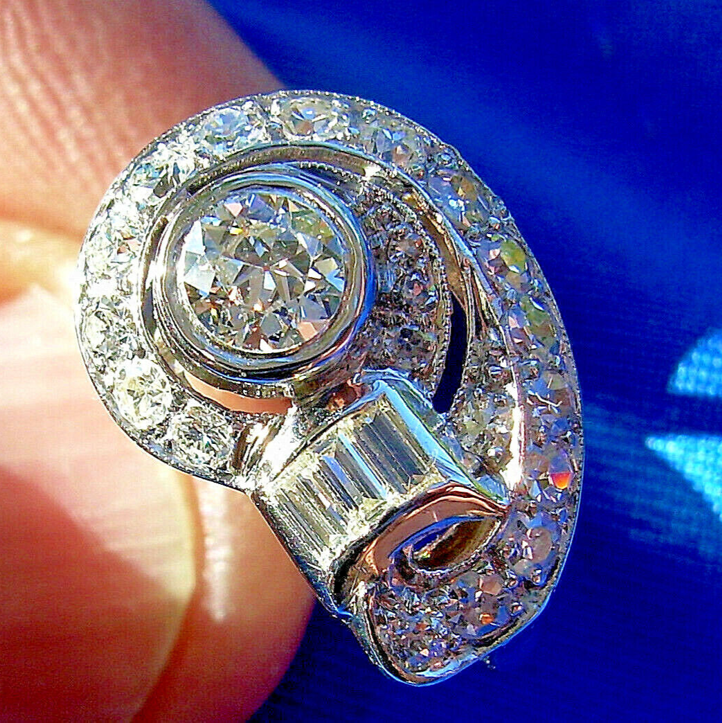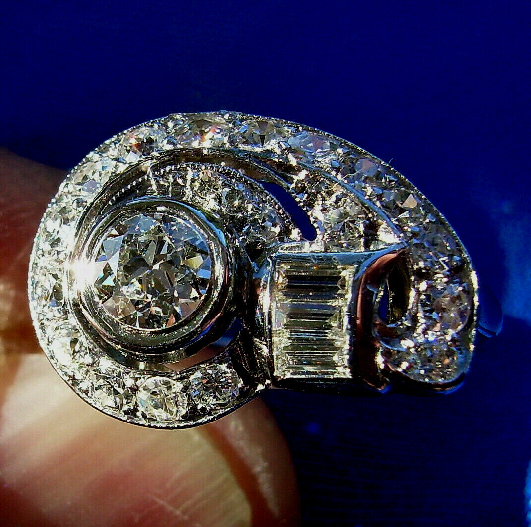 - Earth mined Diamond Deco Engagement Ring 1.41Ct Antique Solid Platinum Statement
