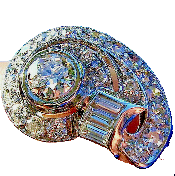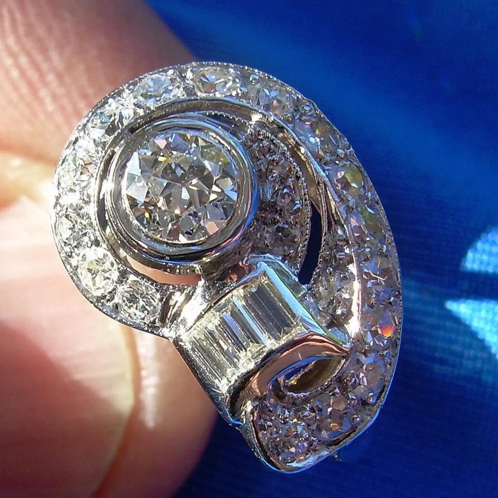 Earth mined Diamond Deco Engagement Ring 1.41Ct Antique Solid Platinum Statement