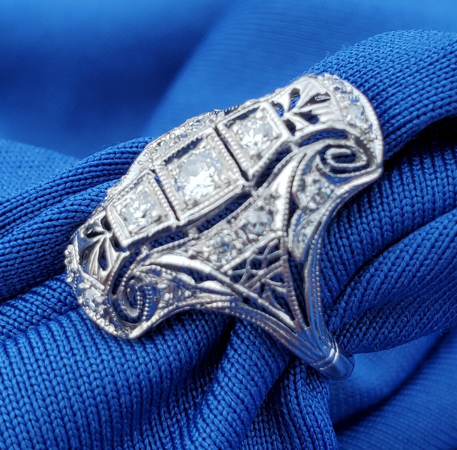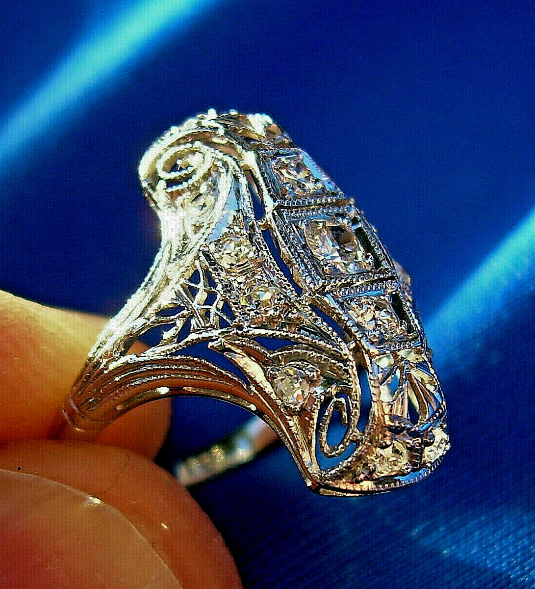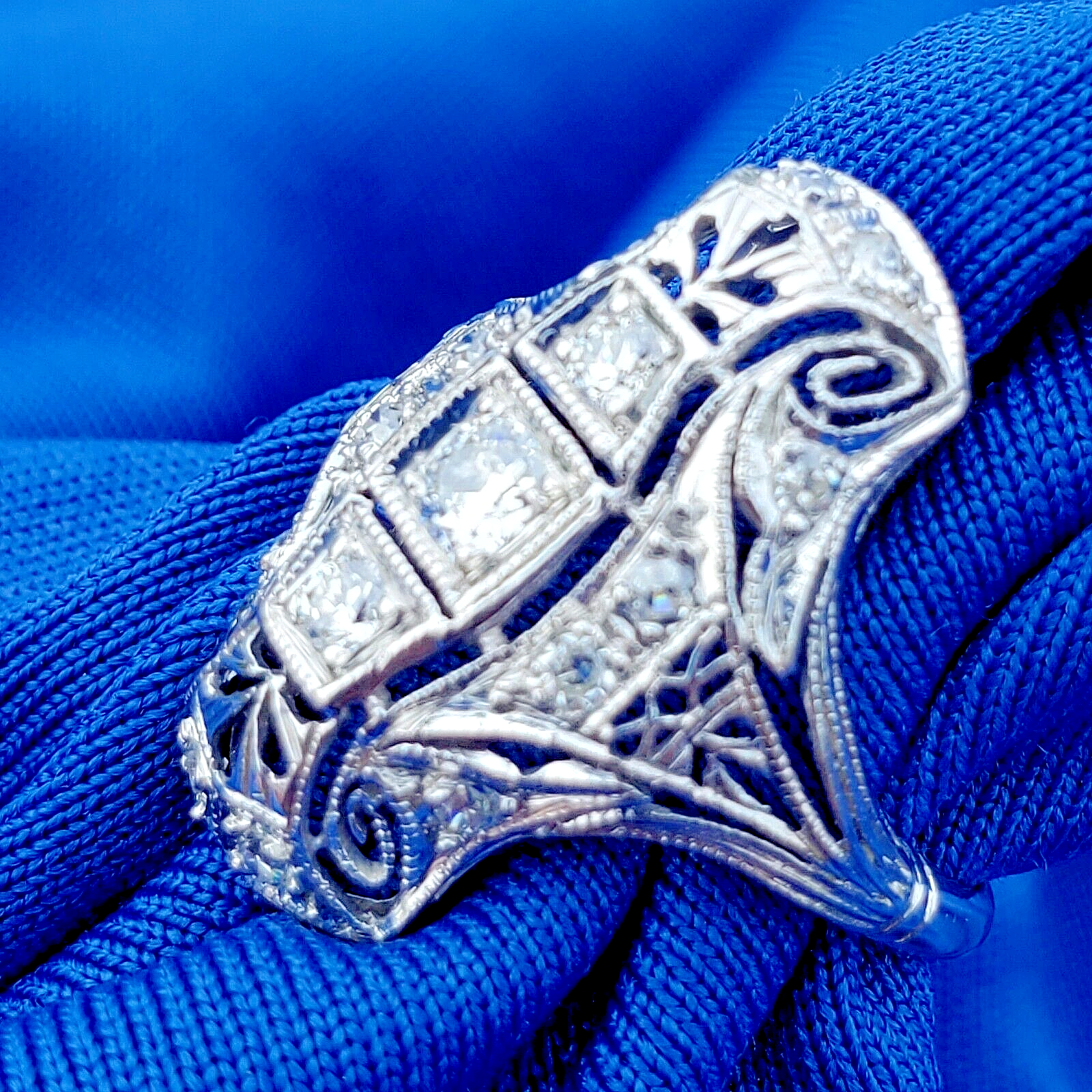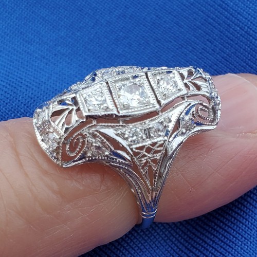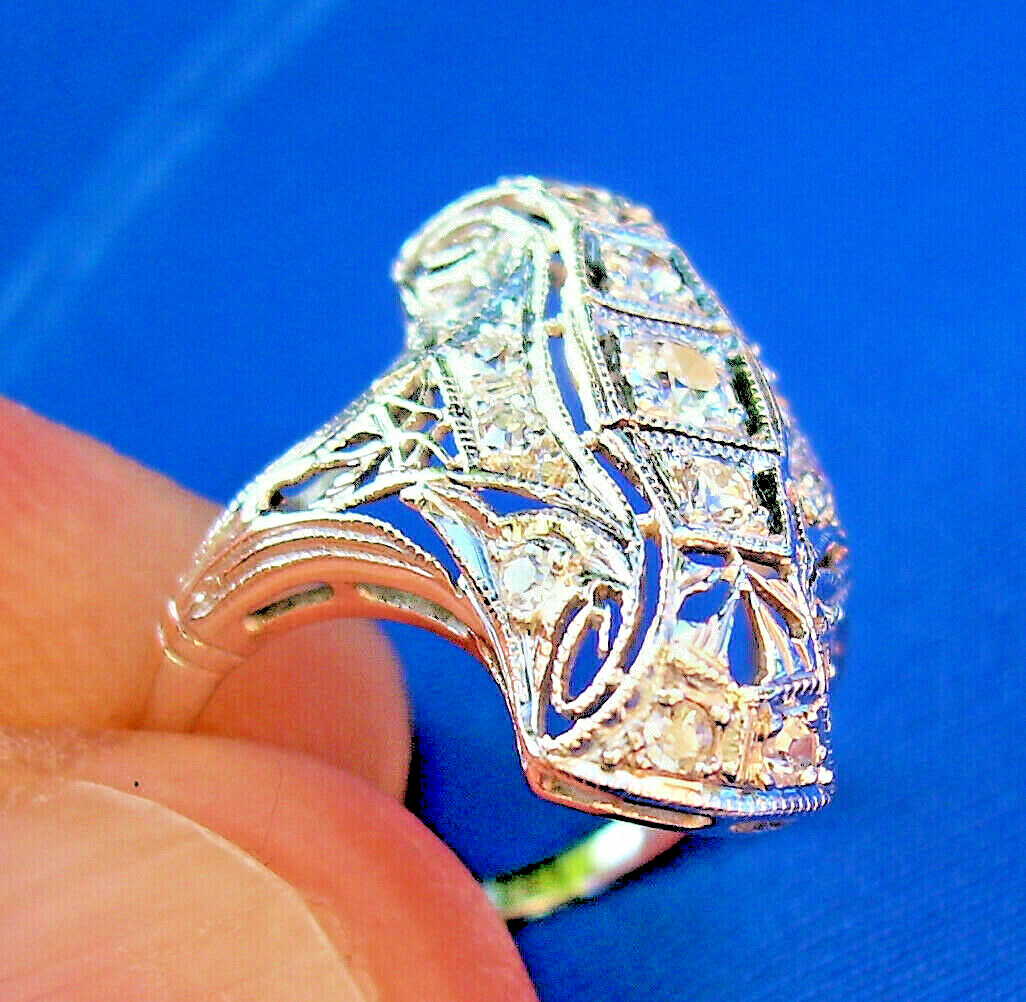 ELEGANT DIAMOND PLATINUM FILIGREE GATSBY ERA STATEMENT RING.