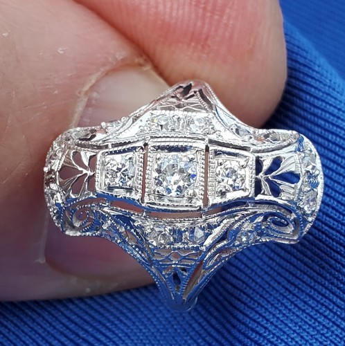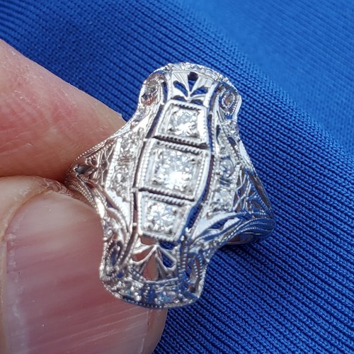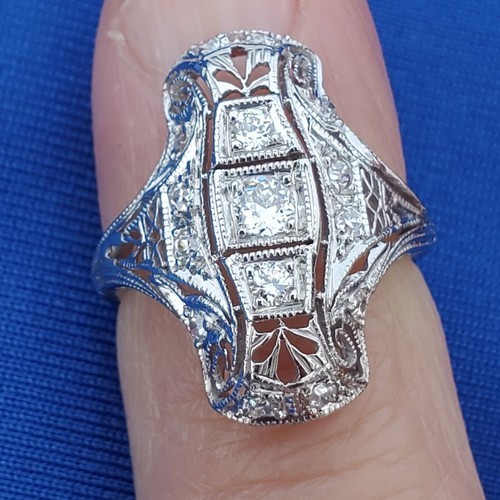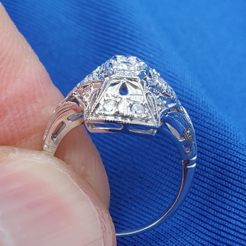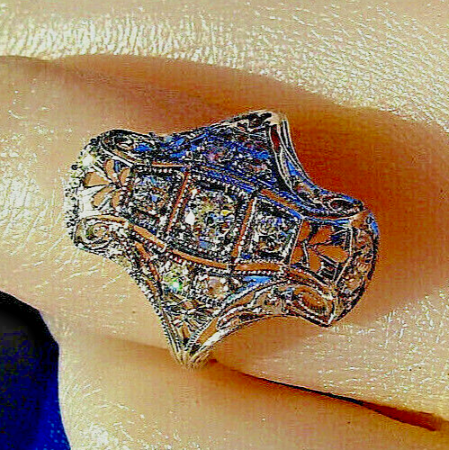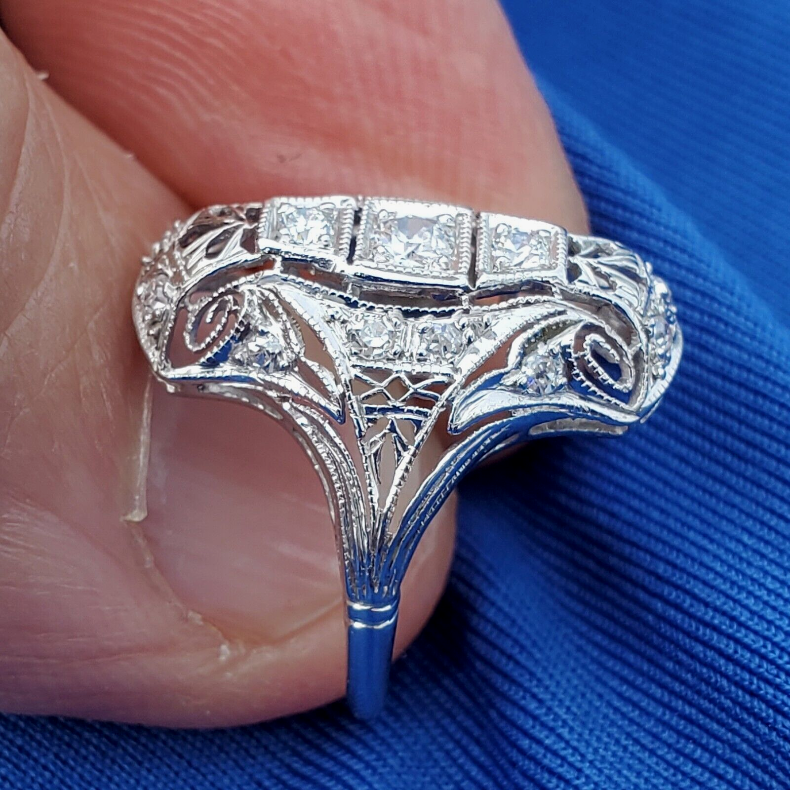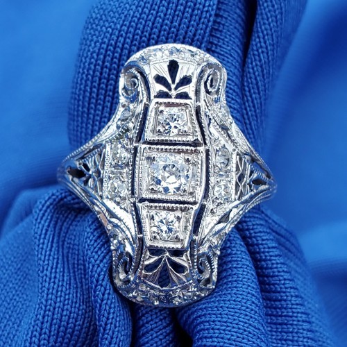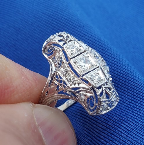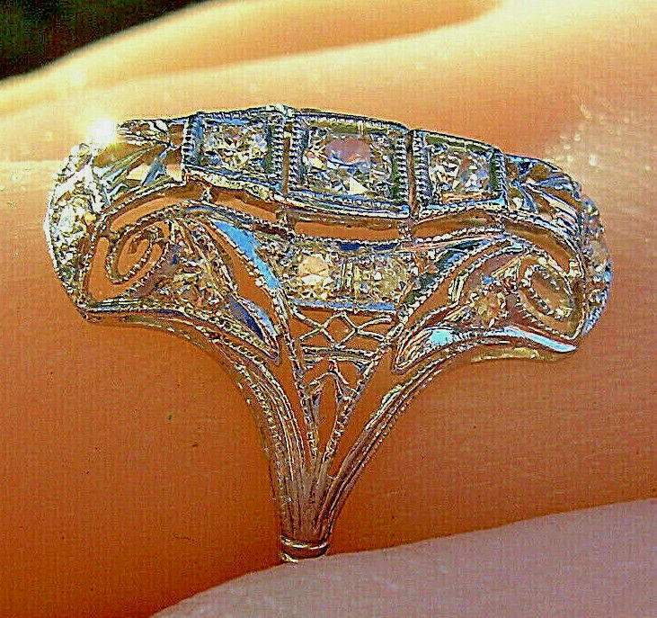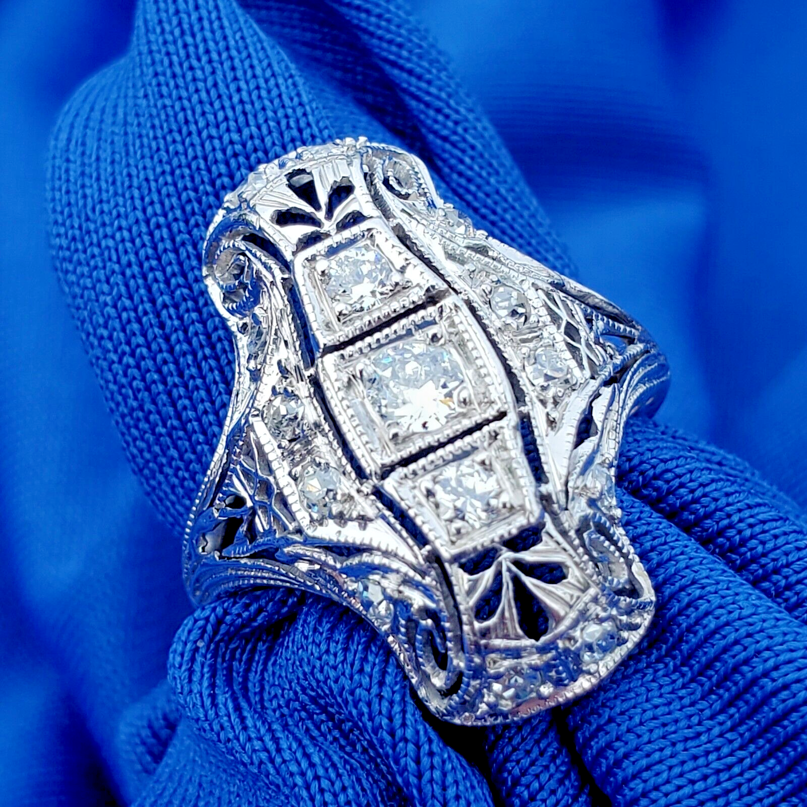 ELEGANT DIAMOND PLATINUM FILIGREE GATSBY ERA STATEMENT RING.