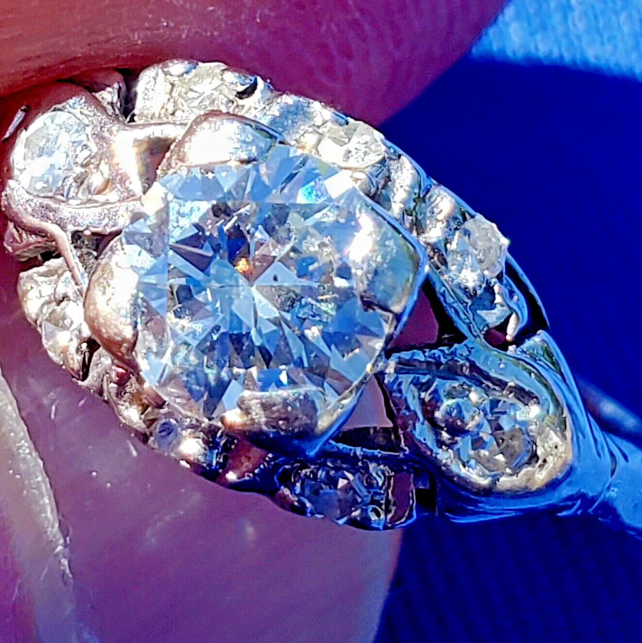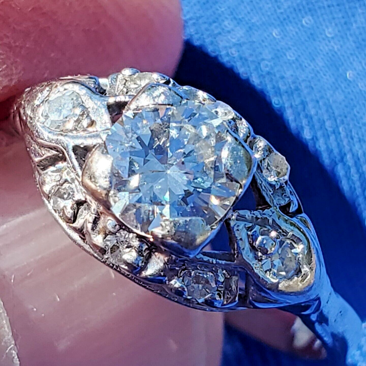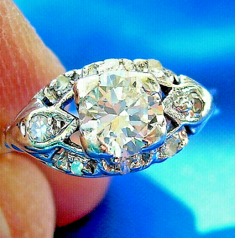 EXOTIC ANTIQUE DIAMOND PLATINUM GATSBY ERA SOLITAIRE.