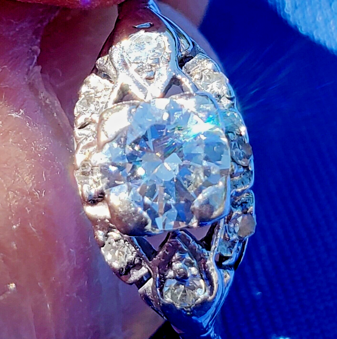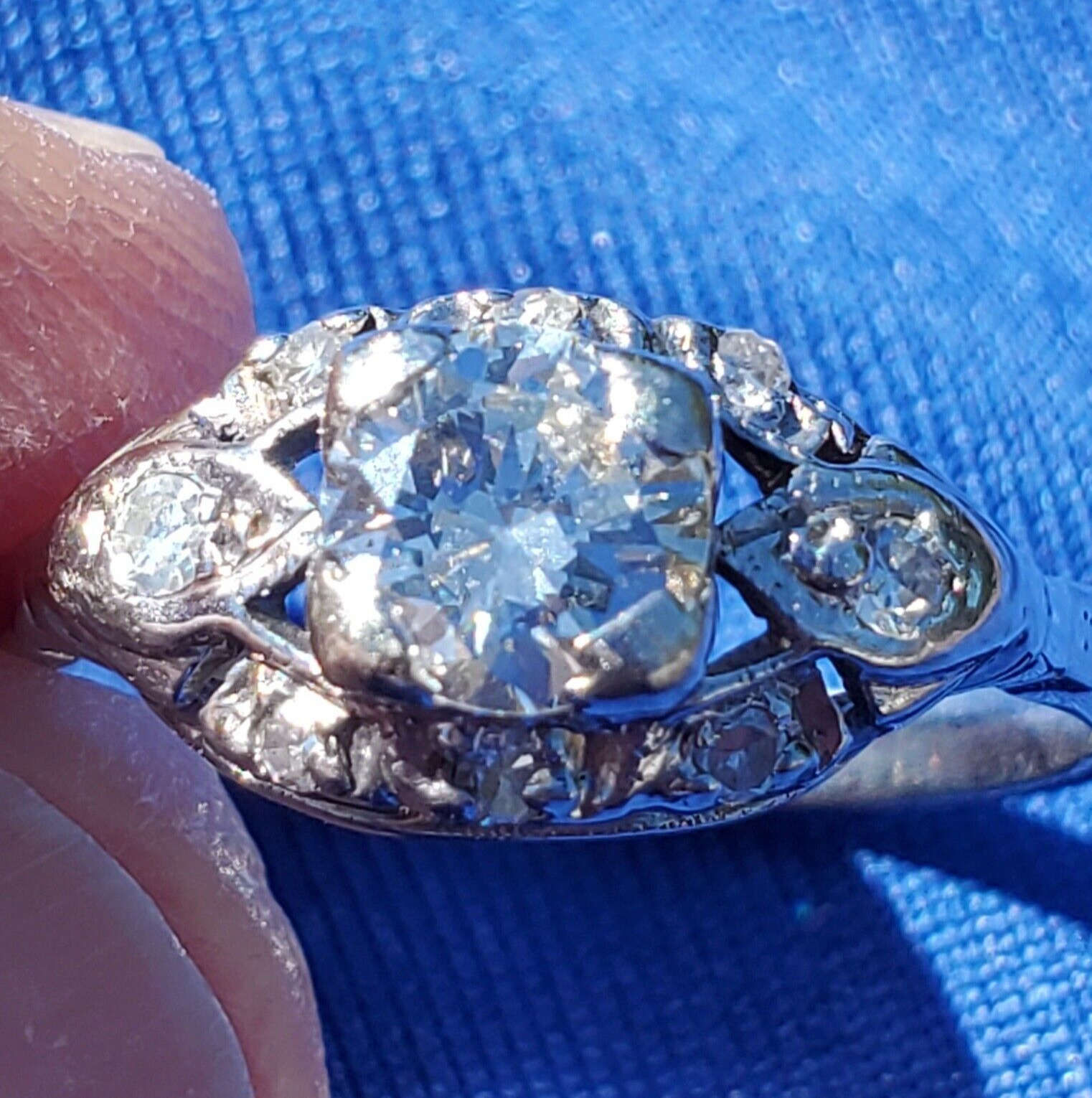 Earth mined Diamond Deco Engagement Ring Gatsby era Antique Platinum Solitaire