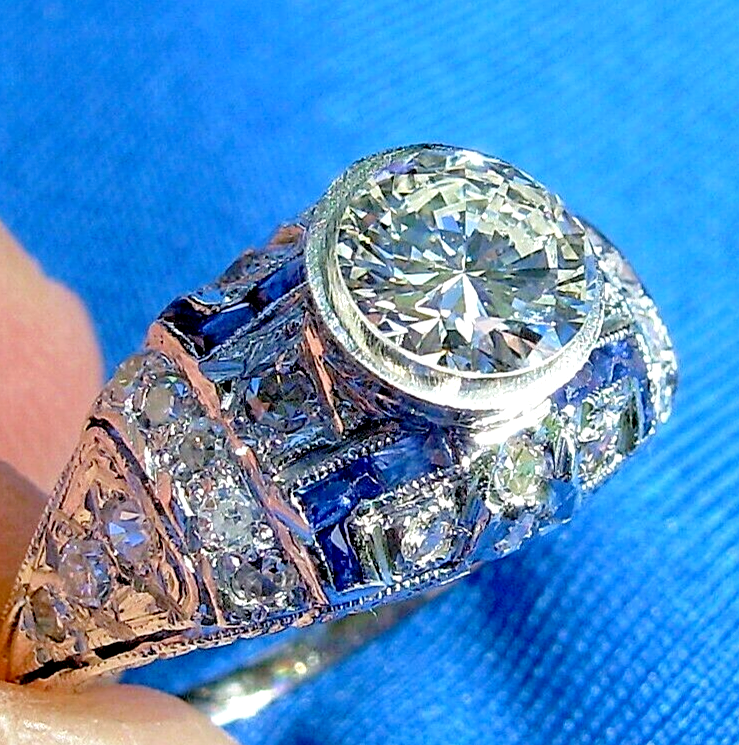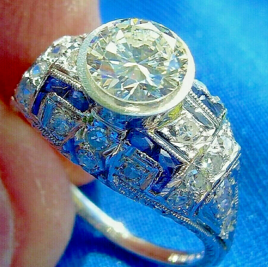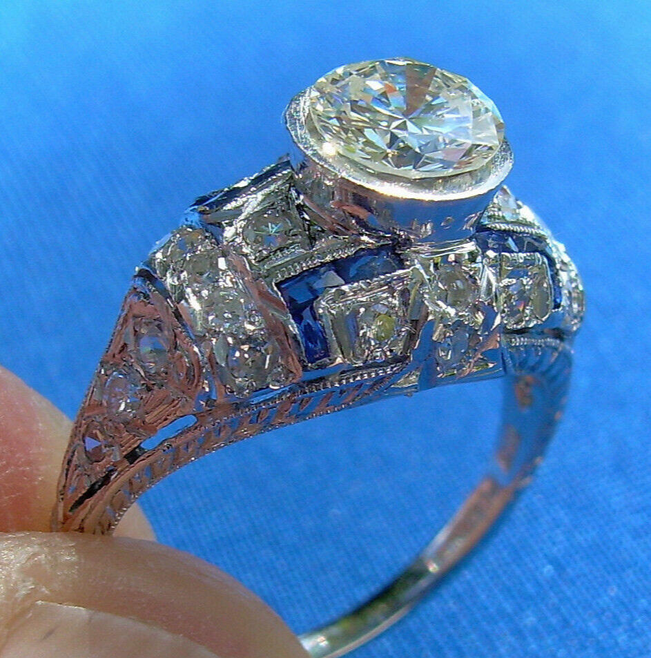 ANTIQUE DIAMOND SAPPHIRE PLATINUM GATSBY ERA SOLITAIRE.