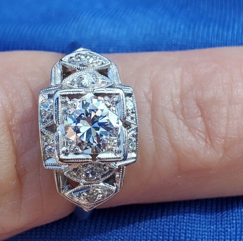 Earth mined Diamond Deco Engagement Statement Ring Estate Platinum Solitaire 6.5