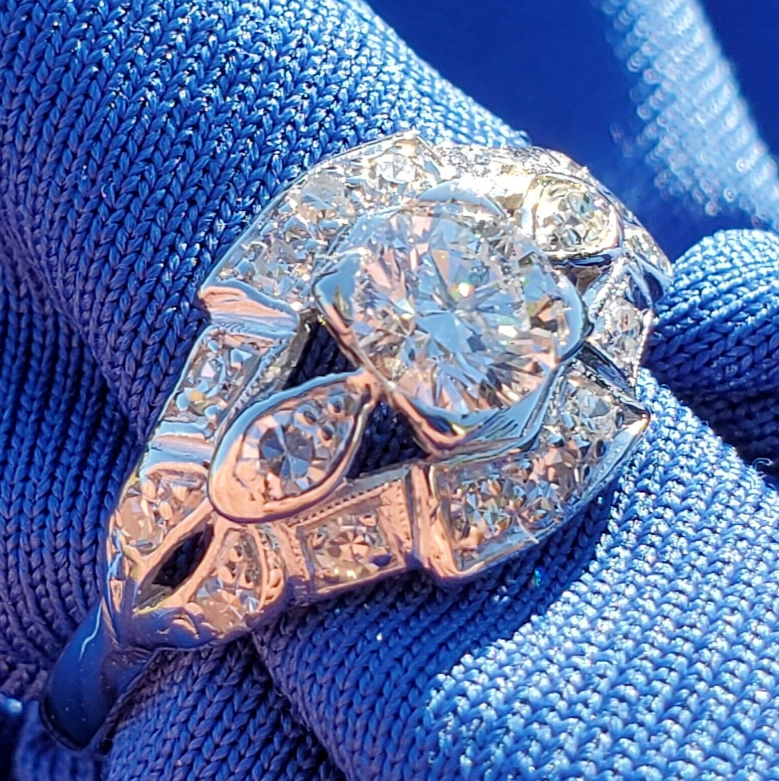 - Earth mined Diamond Deco Gatsby era Engagement Ring Antique Platinum Solitaire