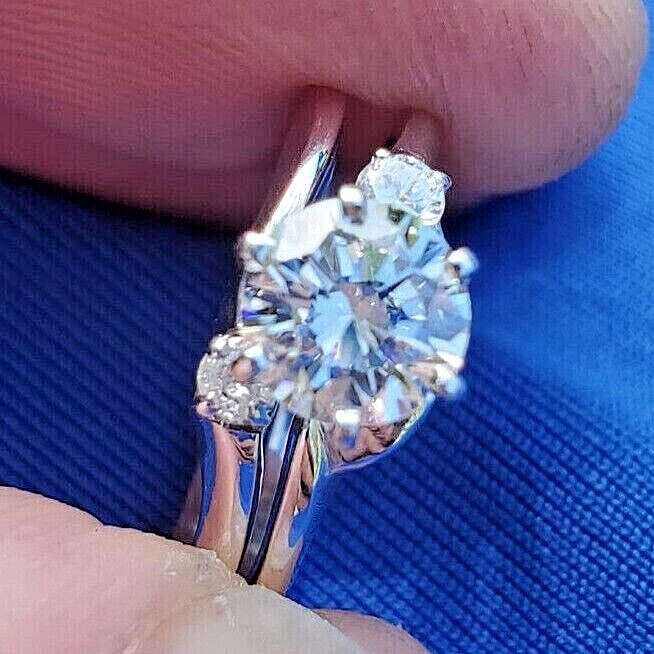 Earth mined Diamond Deco Platinum Engagement Ring Matching Wedding Band Set