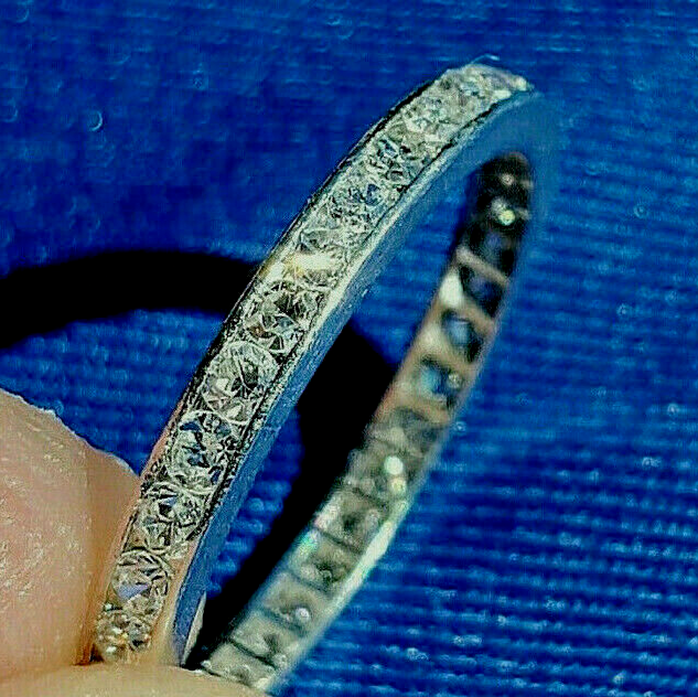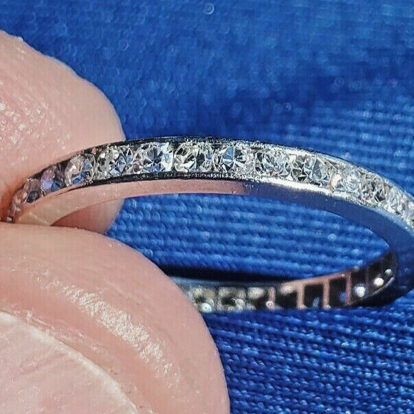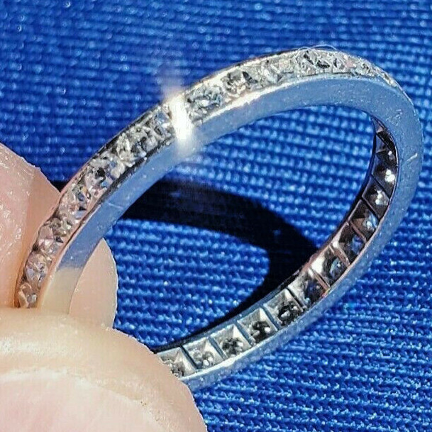 - Earth mined Diamond Deco Wedding Band Antique Platinum Eternity Anniversary Ring