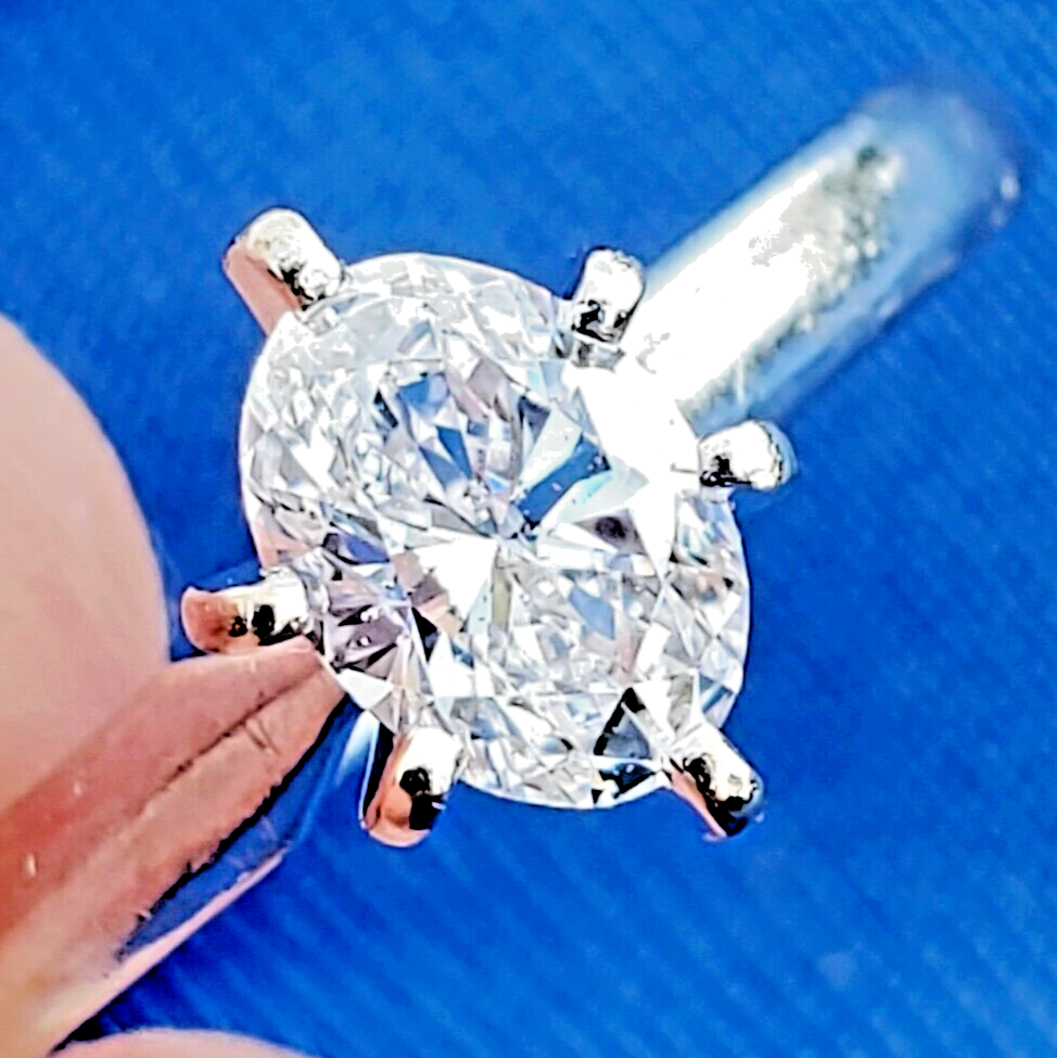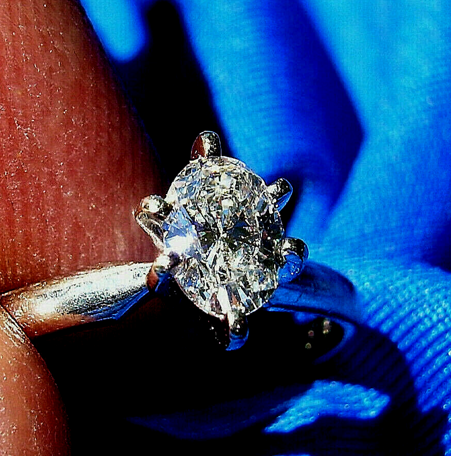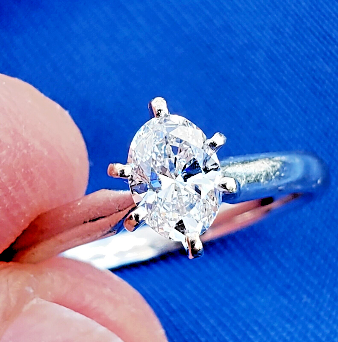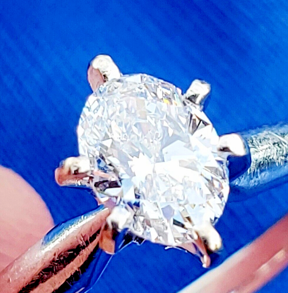 Gorgeous oval brilliant cut diamond set in 6 prong tiffany style setting.