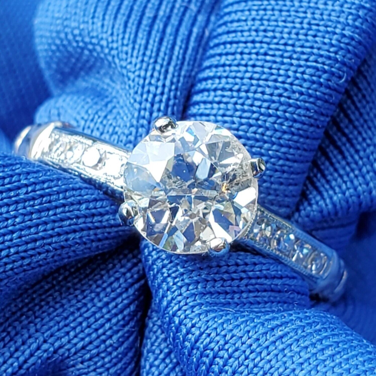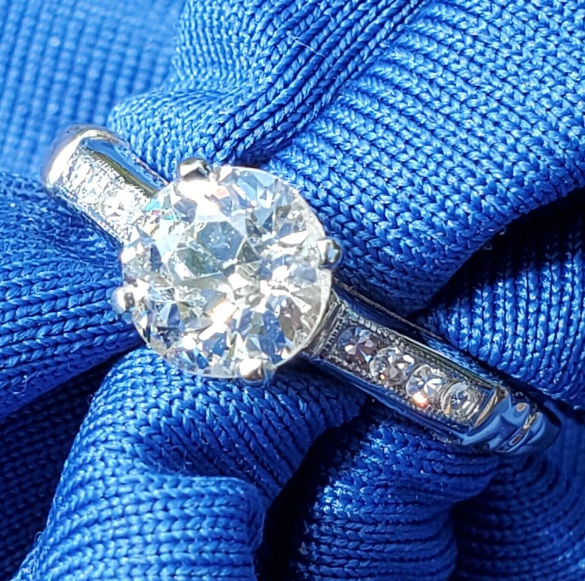 Earth mined Diamond European cut Deco 1 CARAT Engagement Ring Vintage Solitaire