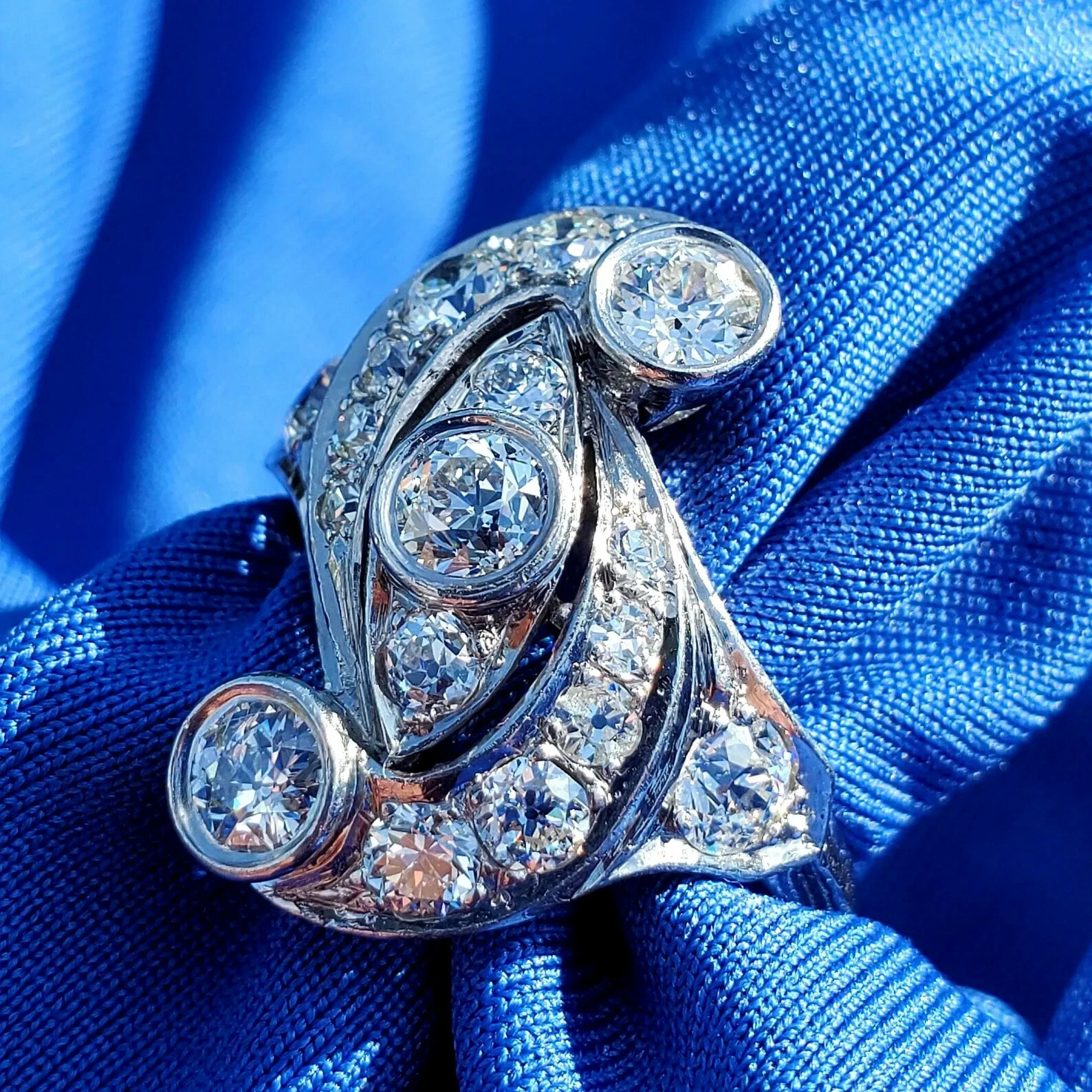 ELEGANT DIAMOND GATSBY ERA COCKTAIL STATEMENT RING.