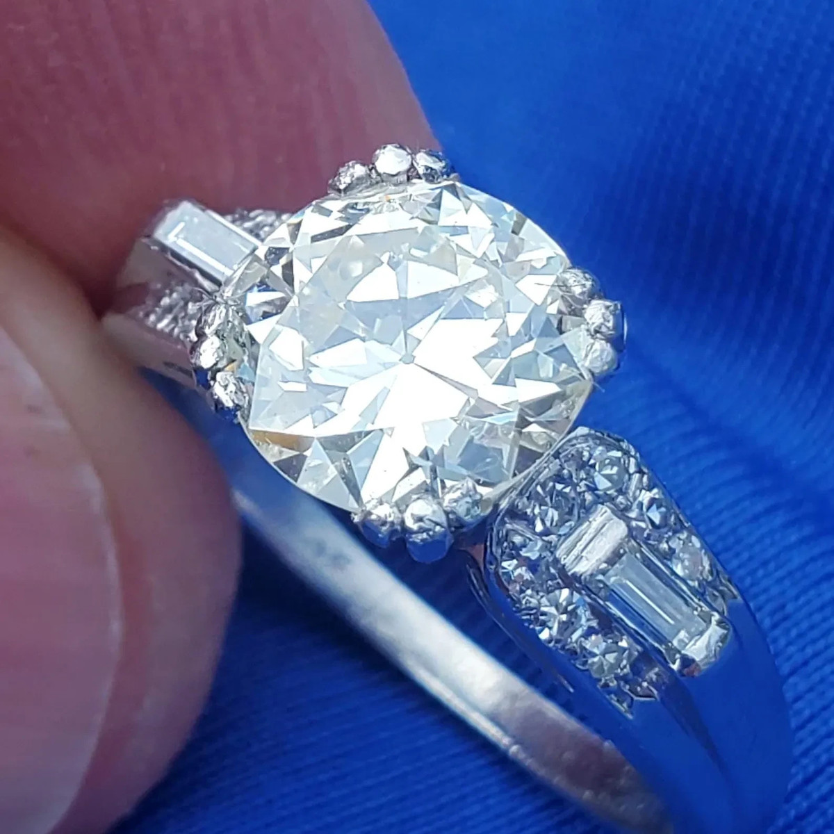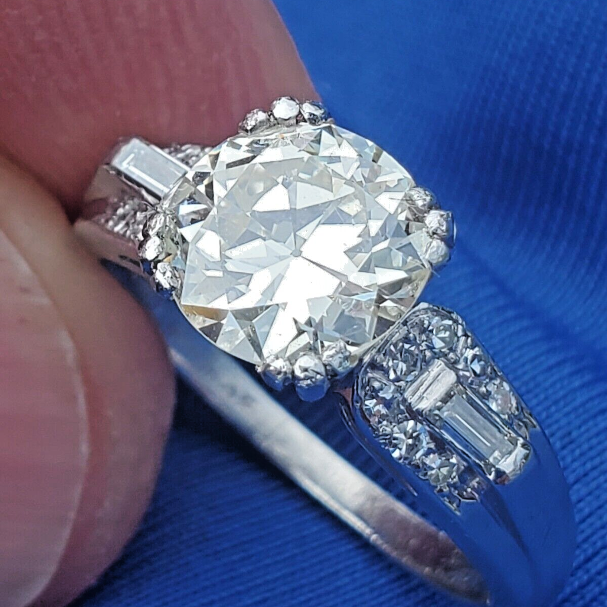 - Earth mined Diamond European cut Deco Engagement Ring Vintage Platinum Solitaire