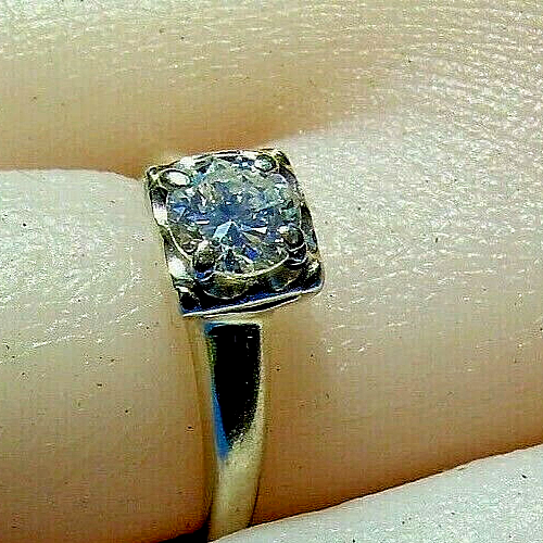 VINTAGE EUROPEAN CUT DIAMOND 14K GOLD SOLITAIRE.