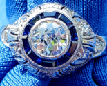 - Earth mined Diamond Sapphire Engagement Ring 1.40 carat Deco Platinum Solitaire