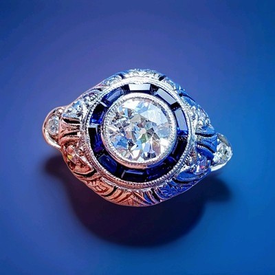 MAGNIFICENT DIAMOND SAPPHIRE GATSBY ERA SOLITAIRE.