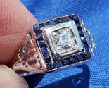 - Earth mined Diamond Sapphire French cut Deco Engagement Platinum Statement RING
