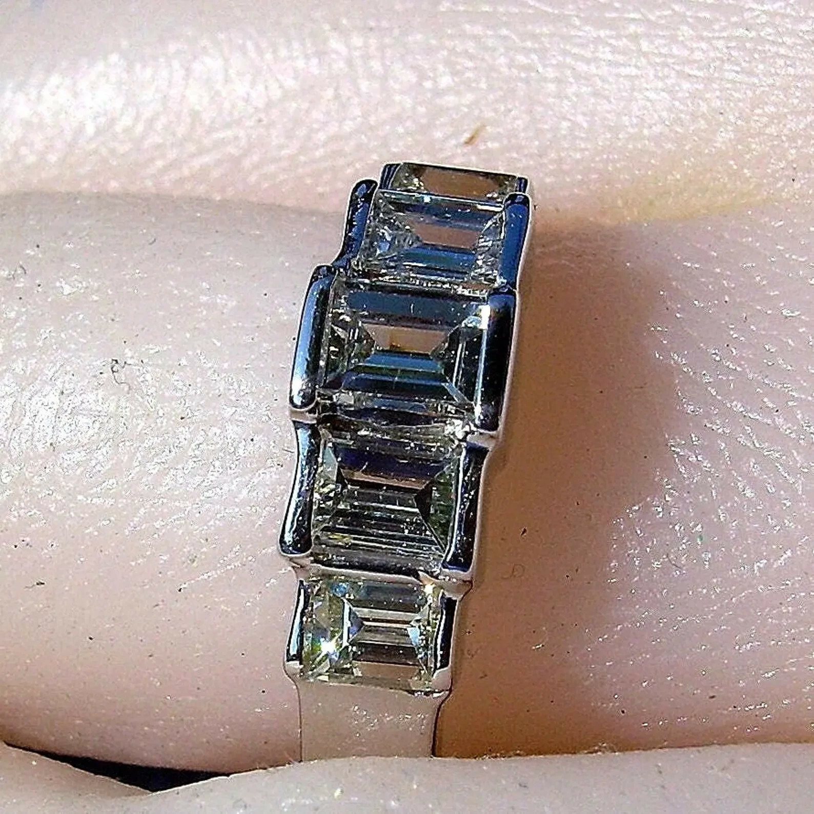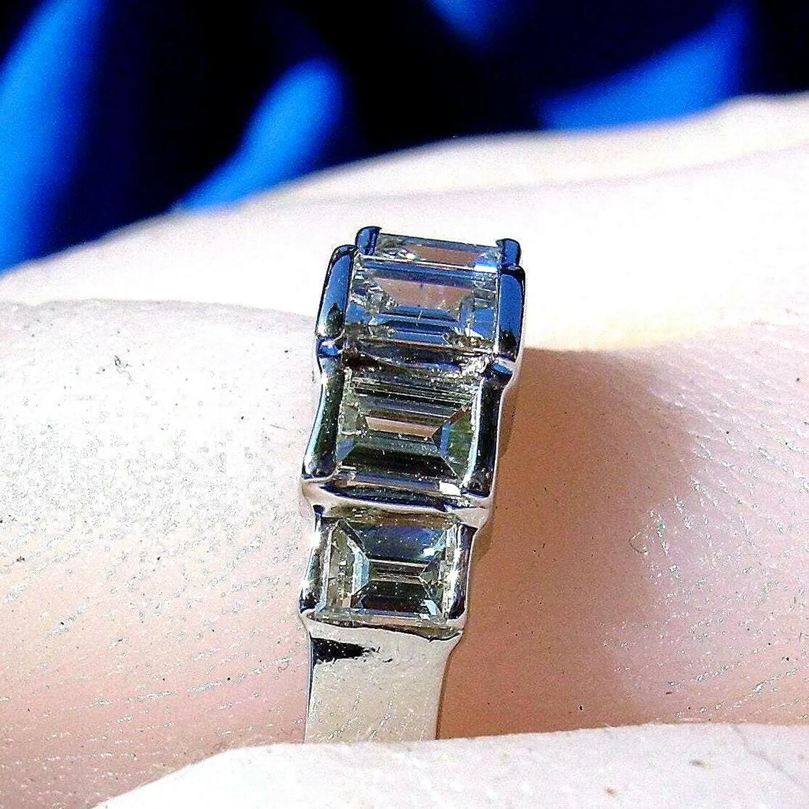 - Earth mined Diamond Vintage Wedding Bridal Band Deco Emerald cut Ring 14k Gold