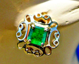 - Earth mined Emerald Deco Design Earrings Unique Vintage Studs Solid 14k Gold