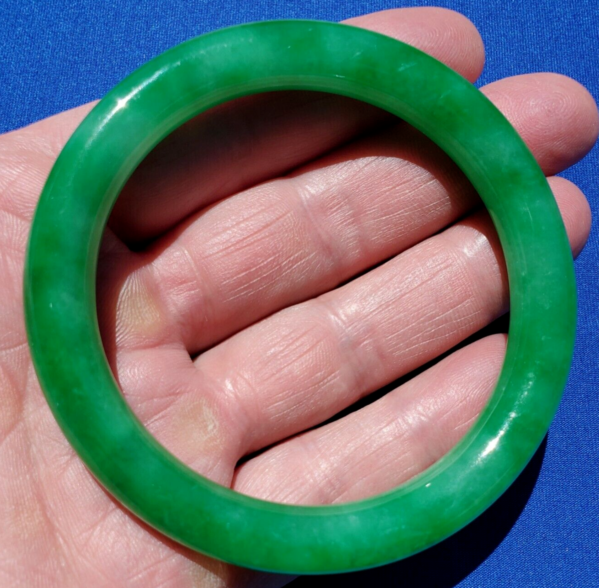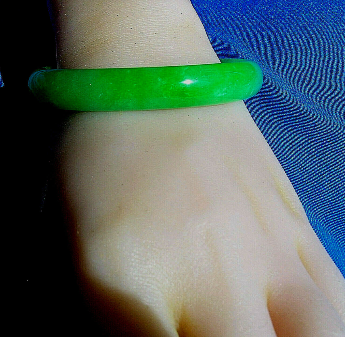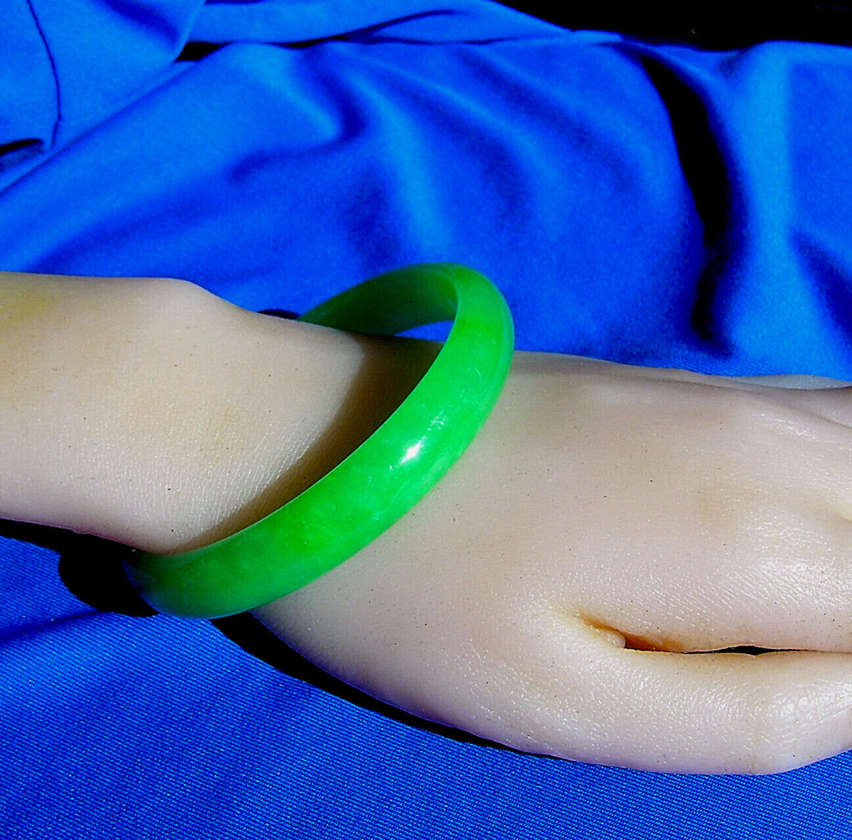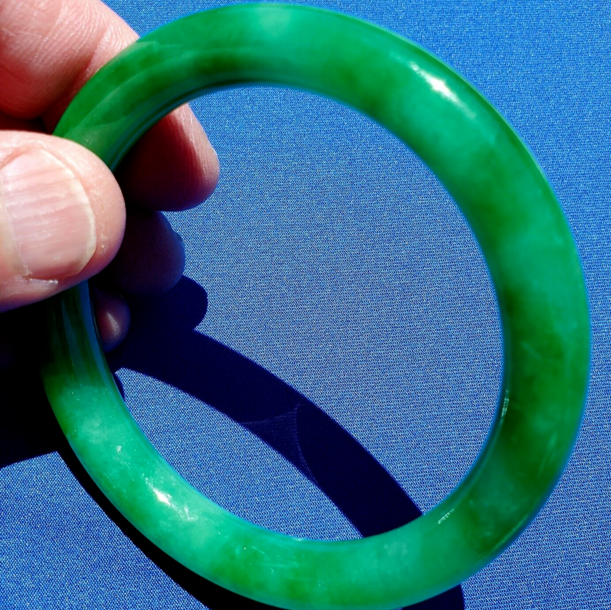 - Earth mined Green Jadeite Jade Deco Bangle Antique semi Translucent Bracelet