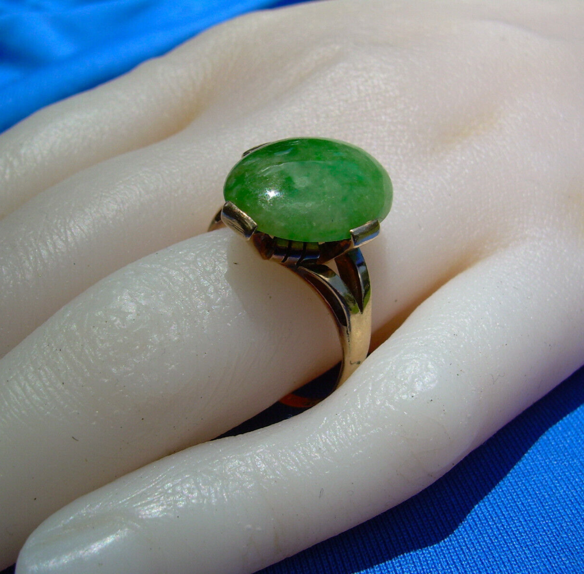 - Earth mined Green Jadeite Jade Deco Engagement Ring 14k Gold Antique Solitaire