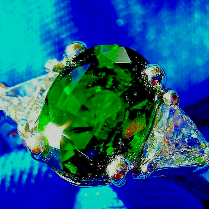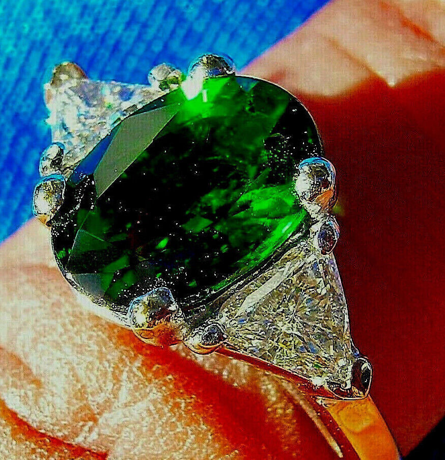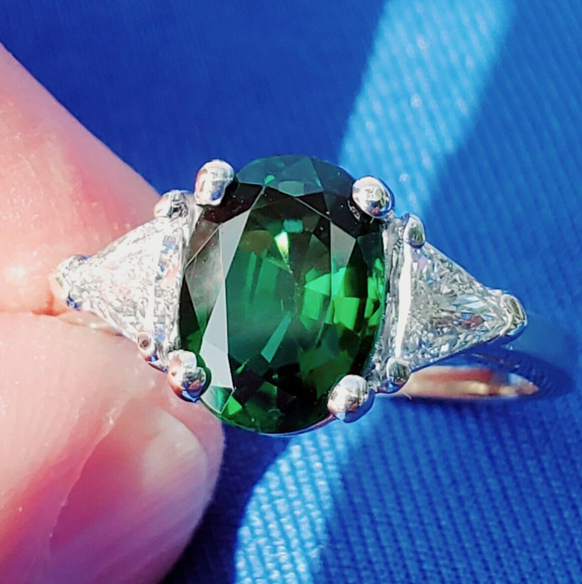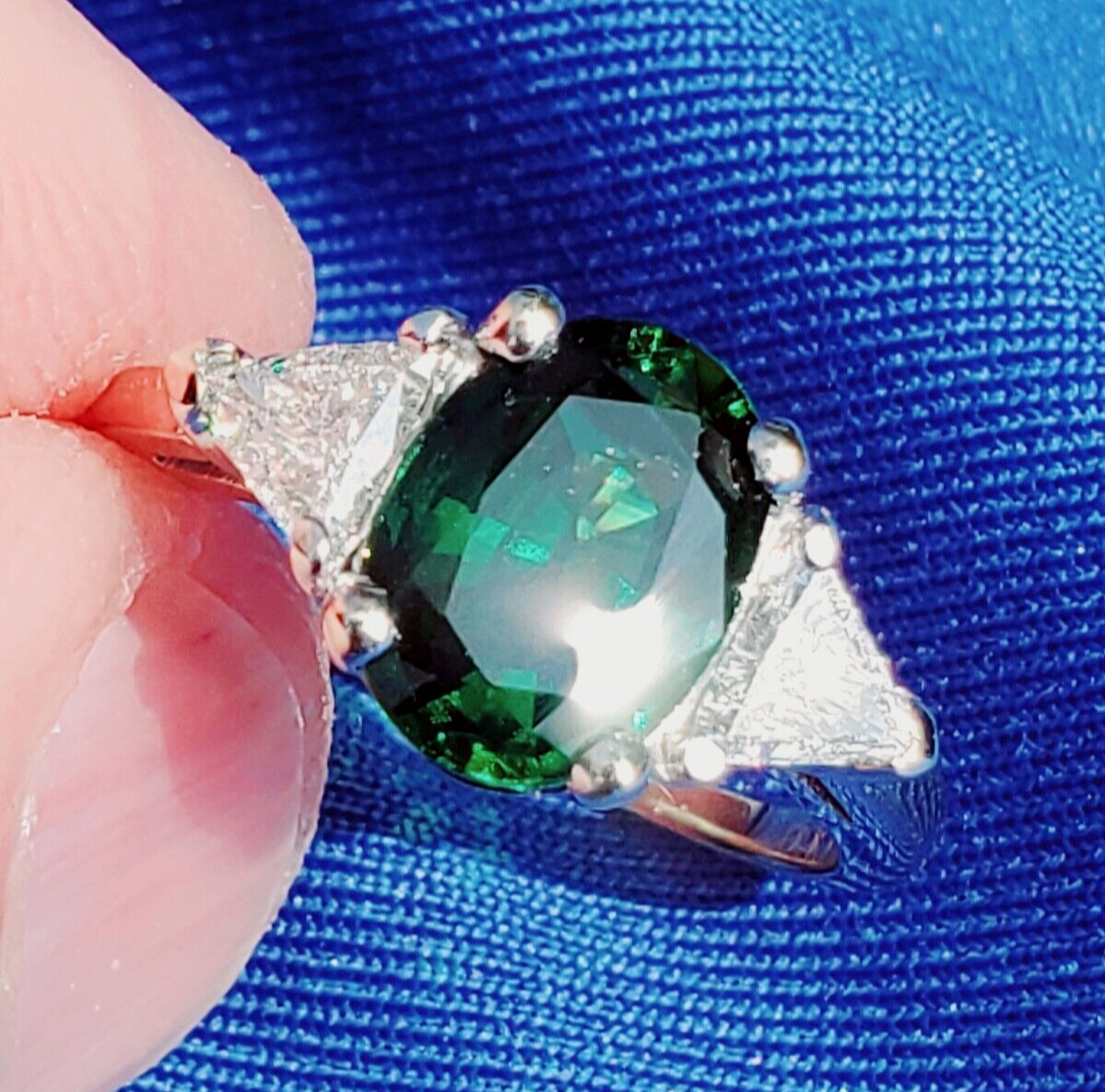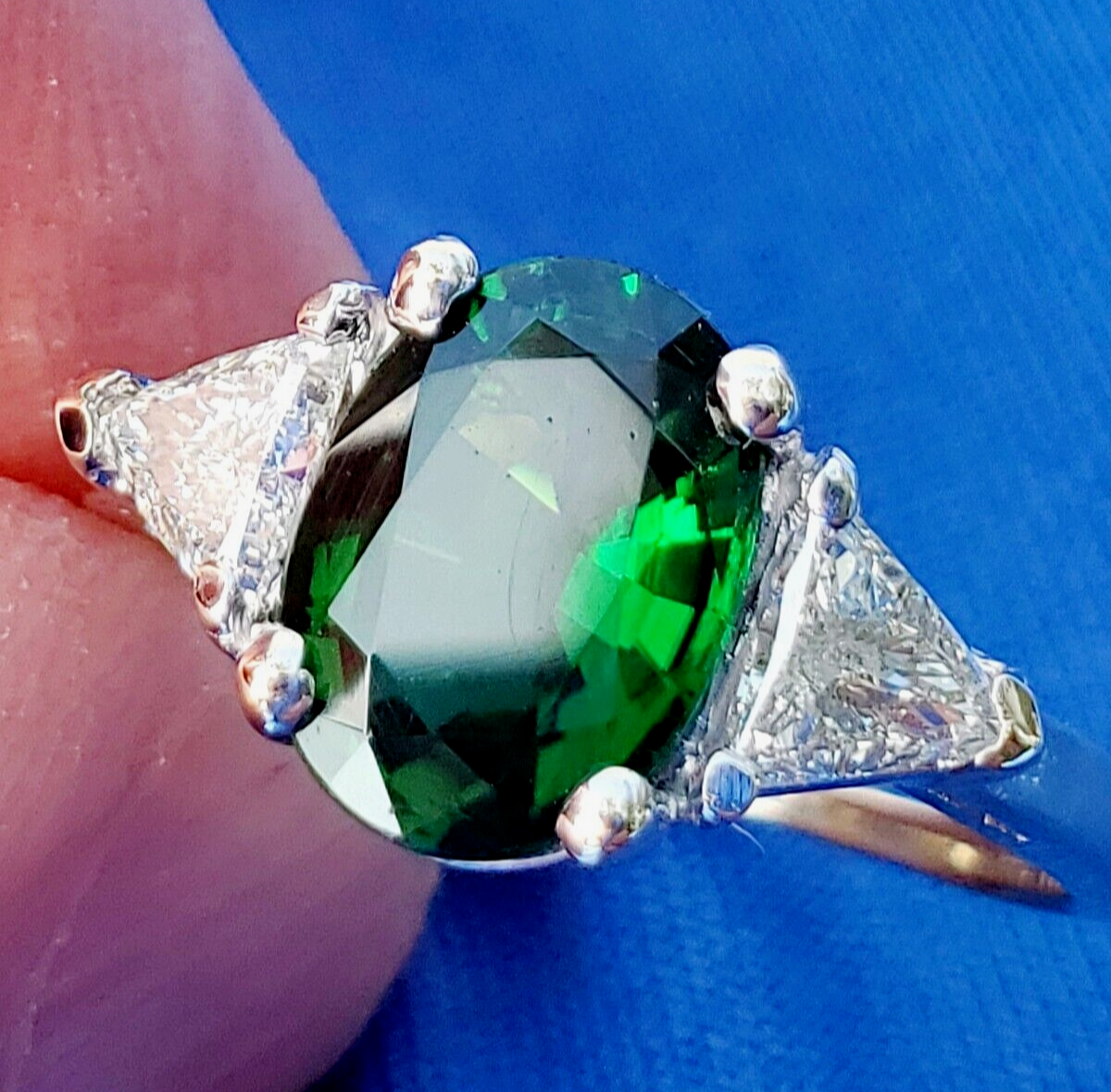 NATURAL TOURMALINE DIAMOND DECO ENGAGEMENT STATEMENT RING.