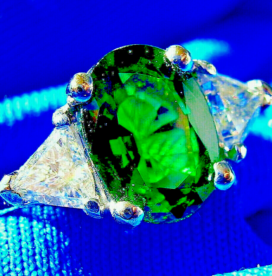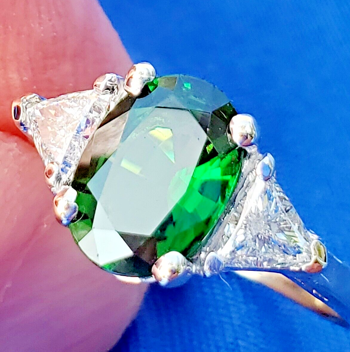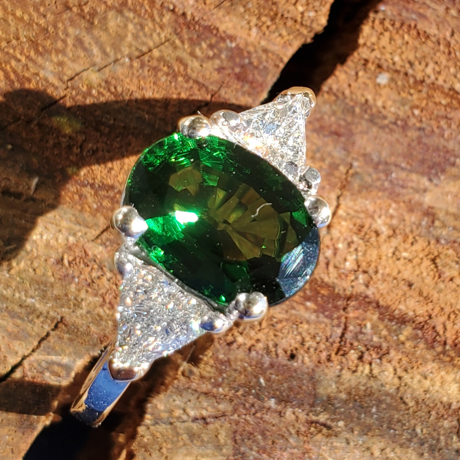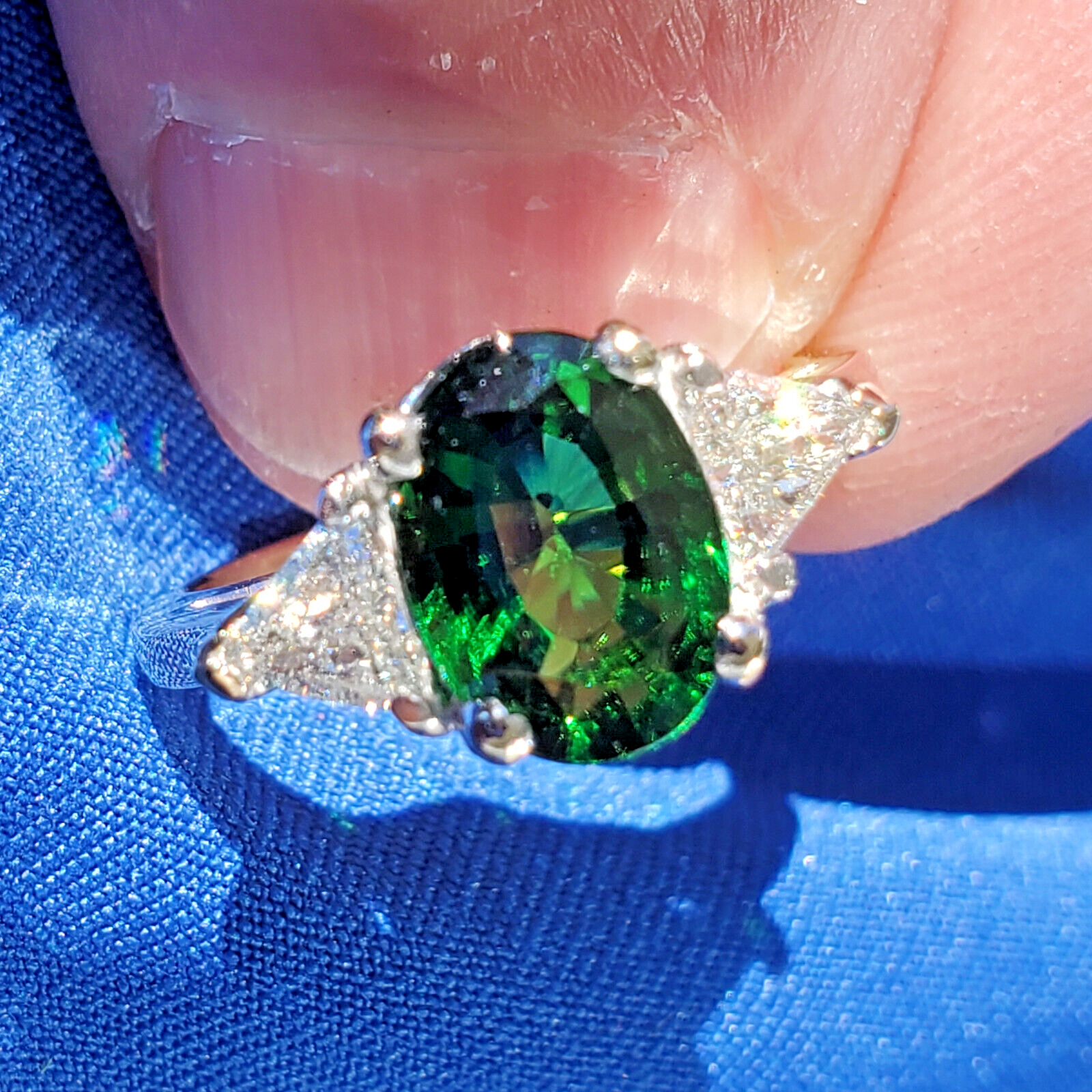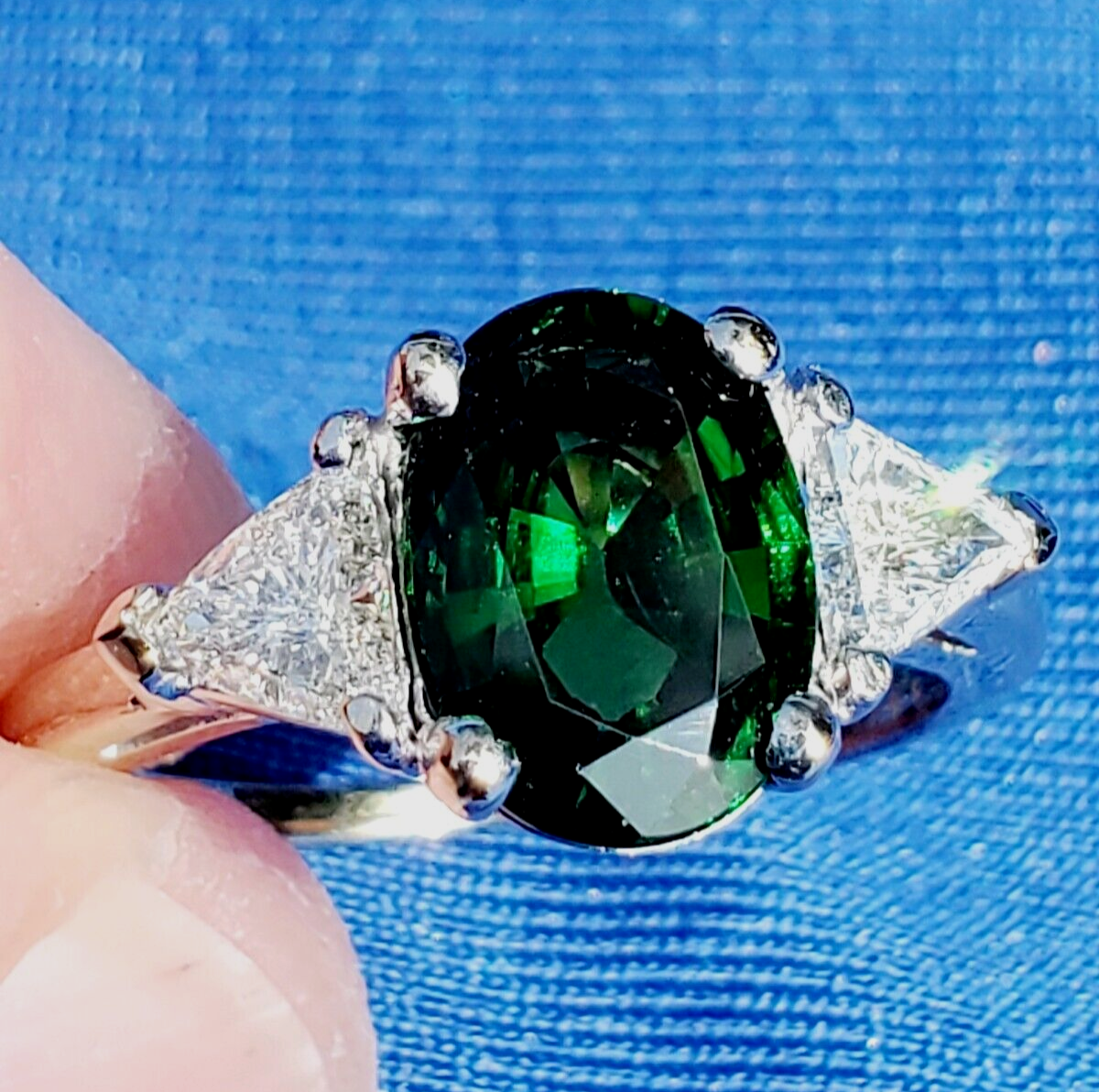 NATURAL TOURMALINE DIAMOND DECO ENGAGEMENT STATEMENT RING.