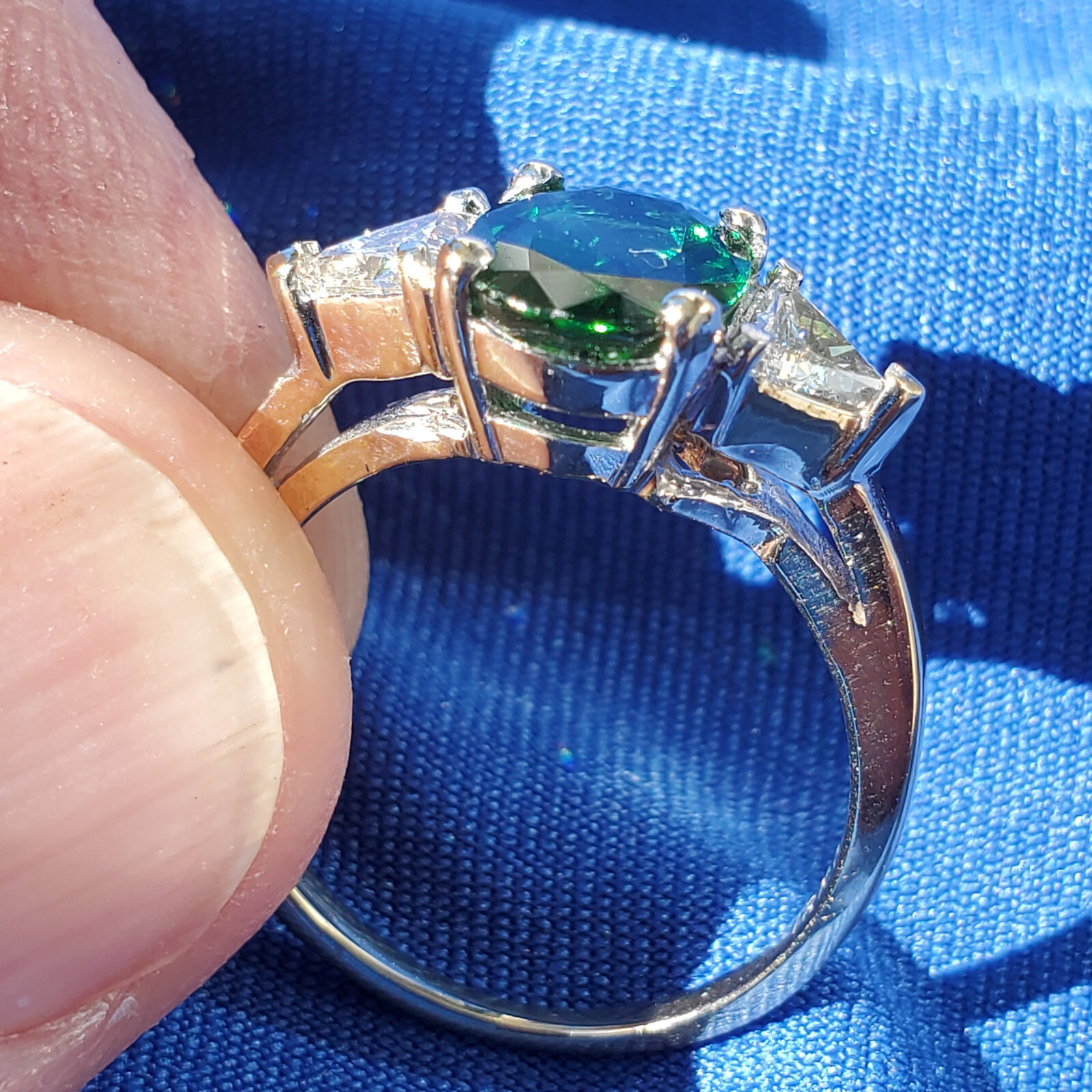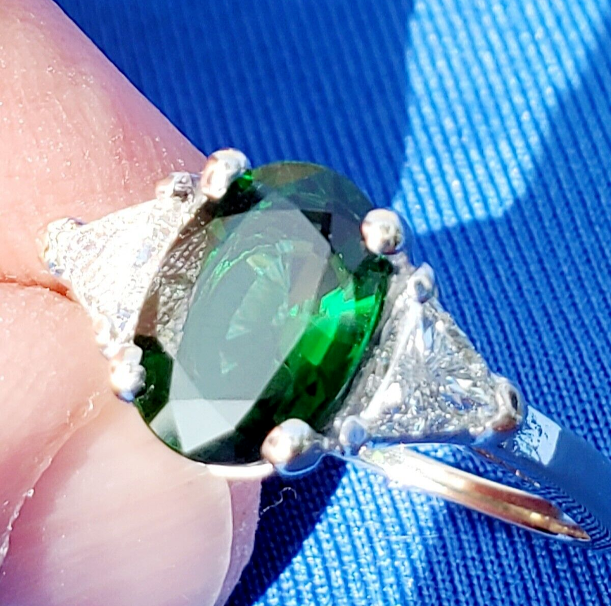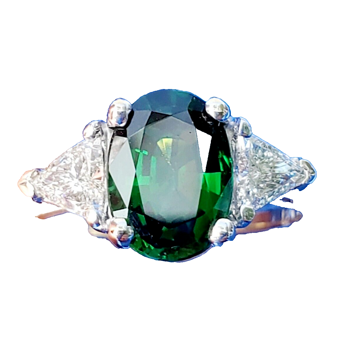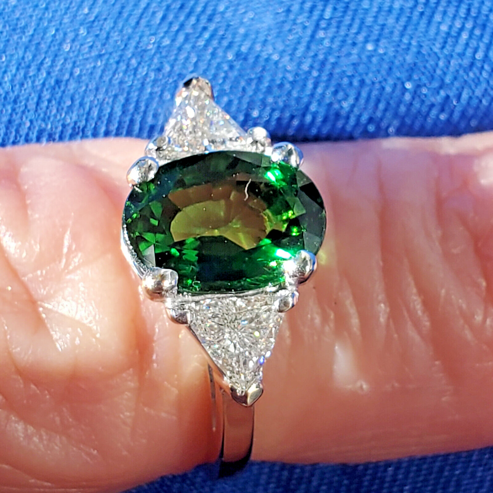 NATURAL TOURMALINE DIAMOND DECO ENGAGEMENT STATEMENT RING.
