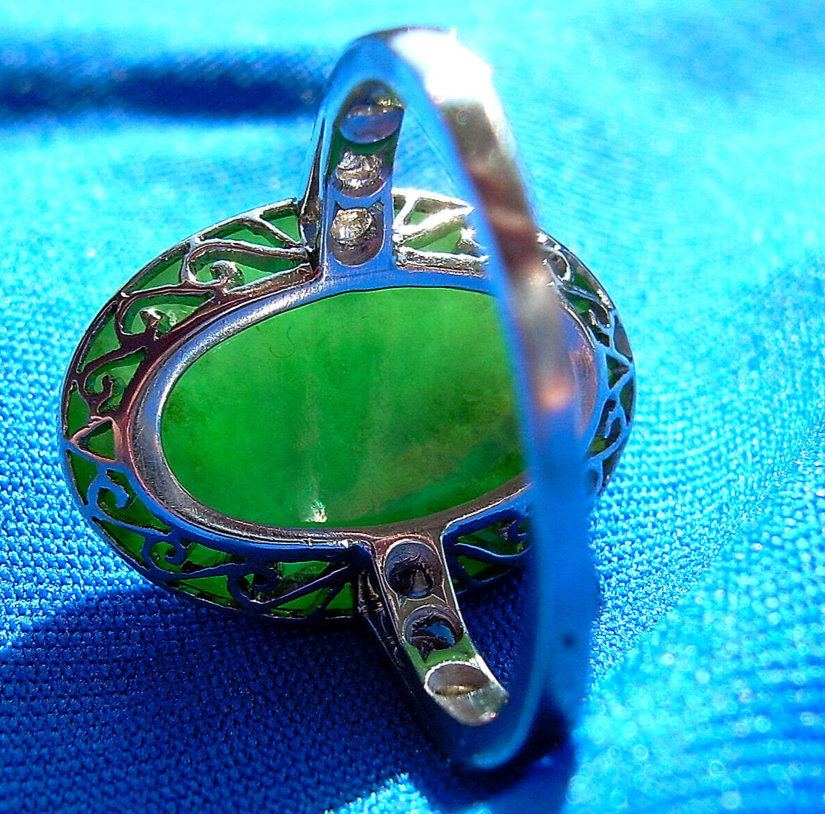 - Earth mined Imperial Green Jadeite JADE Deco Engagement Ring Platinum Diamond