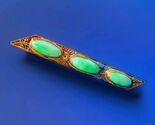 Earth mined Jade Antique Deco Brooch Victorian Filigree Solid 14k Gold Bar Pin