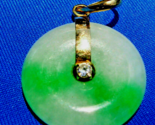 - Earth mined Jadeite Jade Diamond Vintage Deco Vivid Green White Disc Pendant 18k