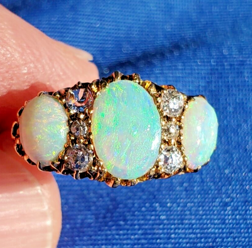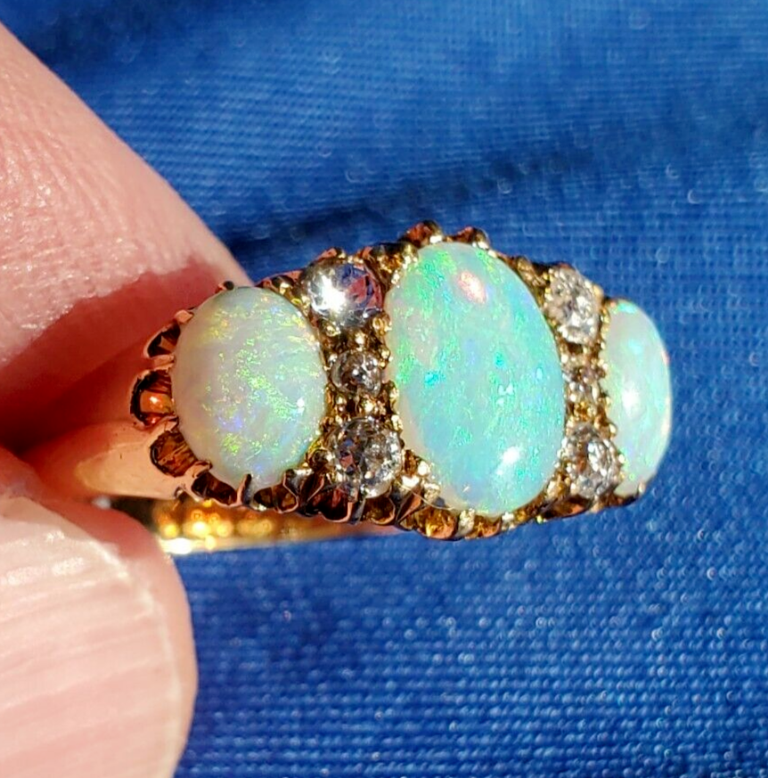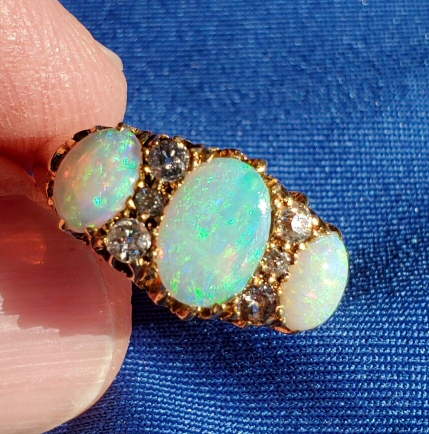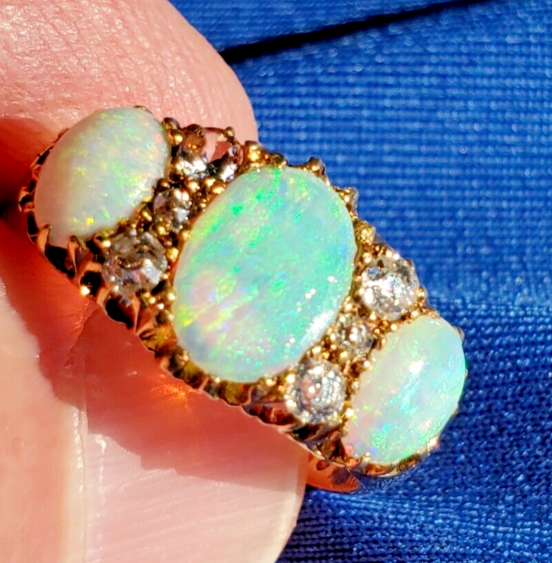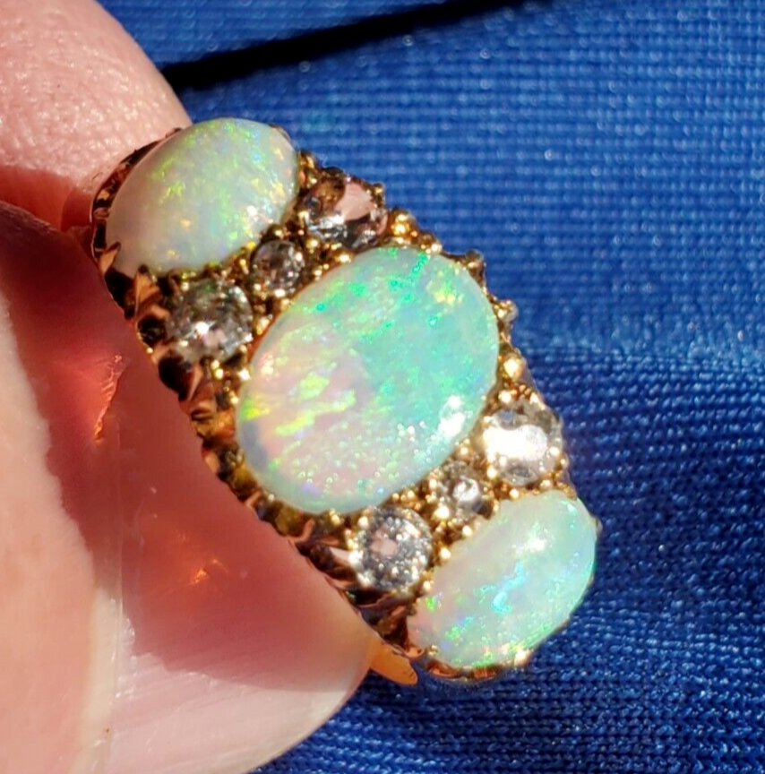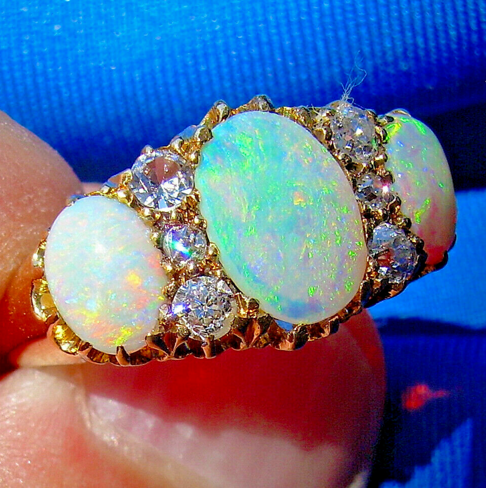 Earth mined Opal Diamond Deco Engagement Ring Antique Victorian 18k Gold Setting