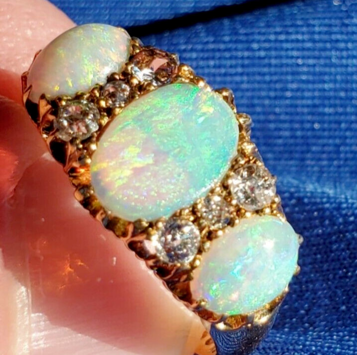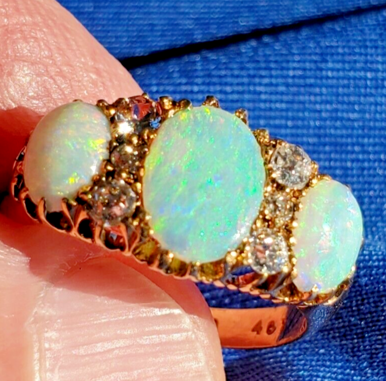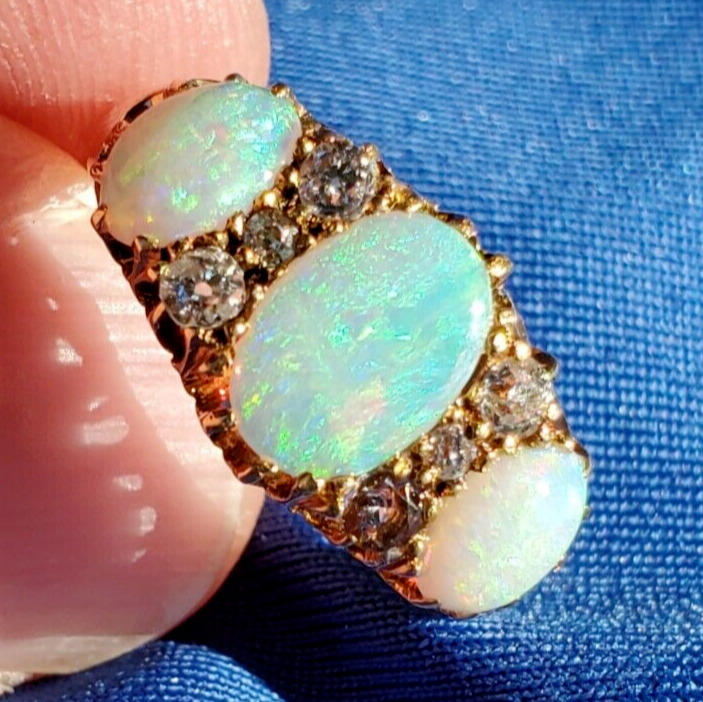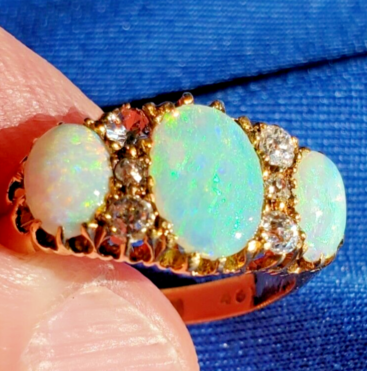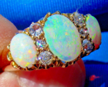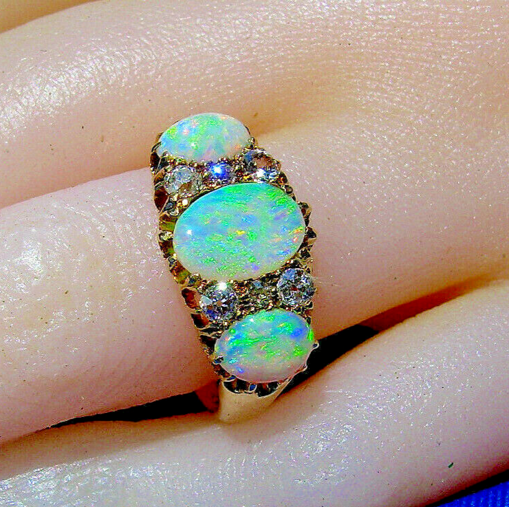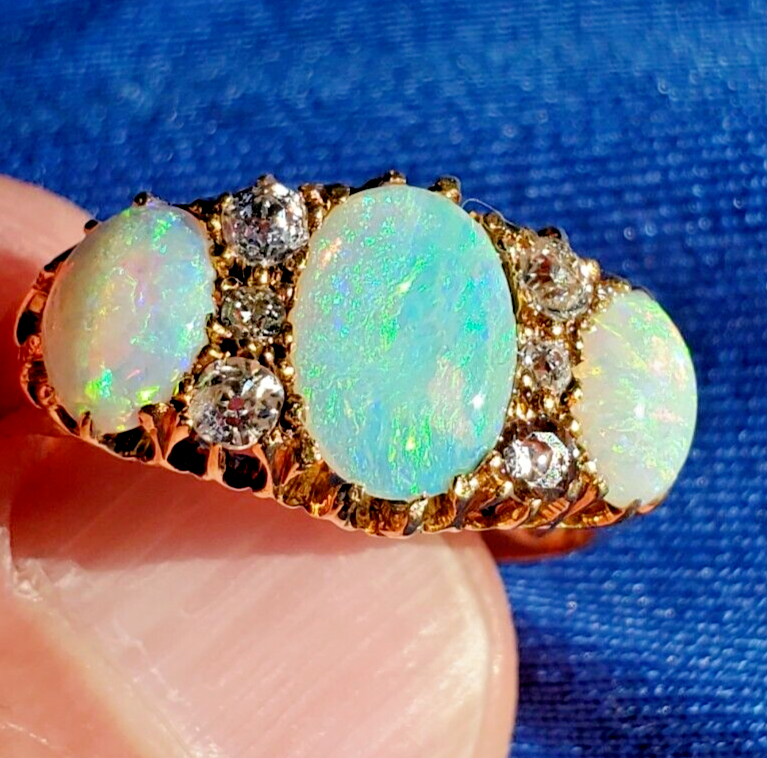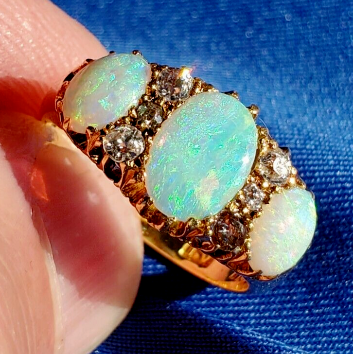 Earth mined Opal Diamond Deco Engagement Ring Antique Victorian 18k Gold Setting