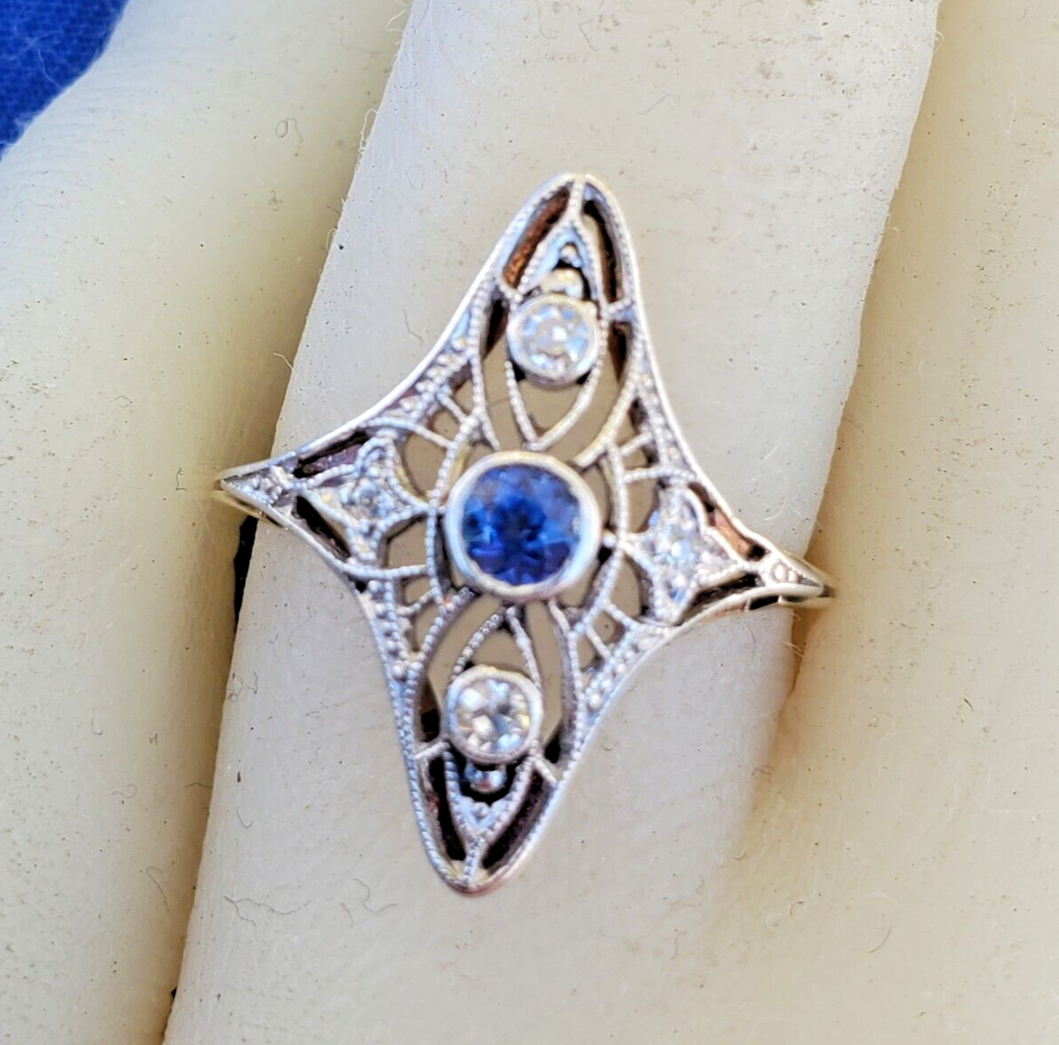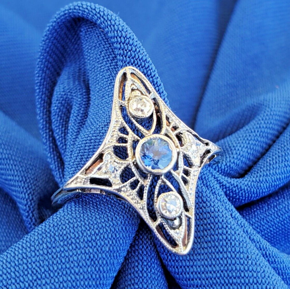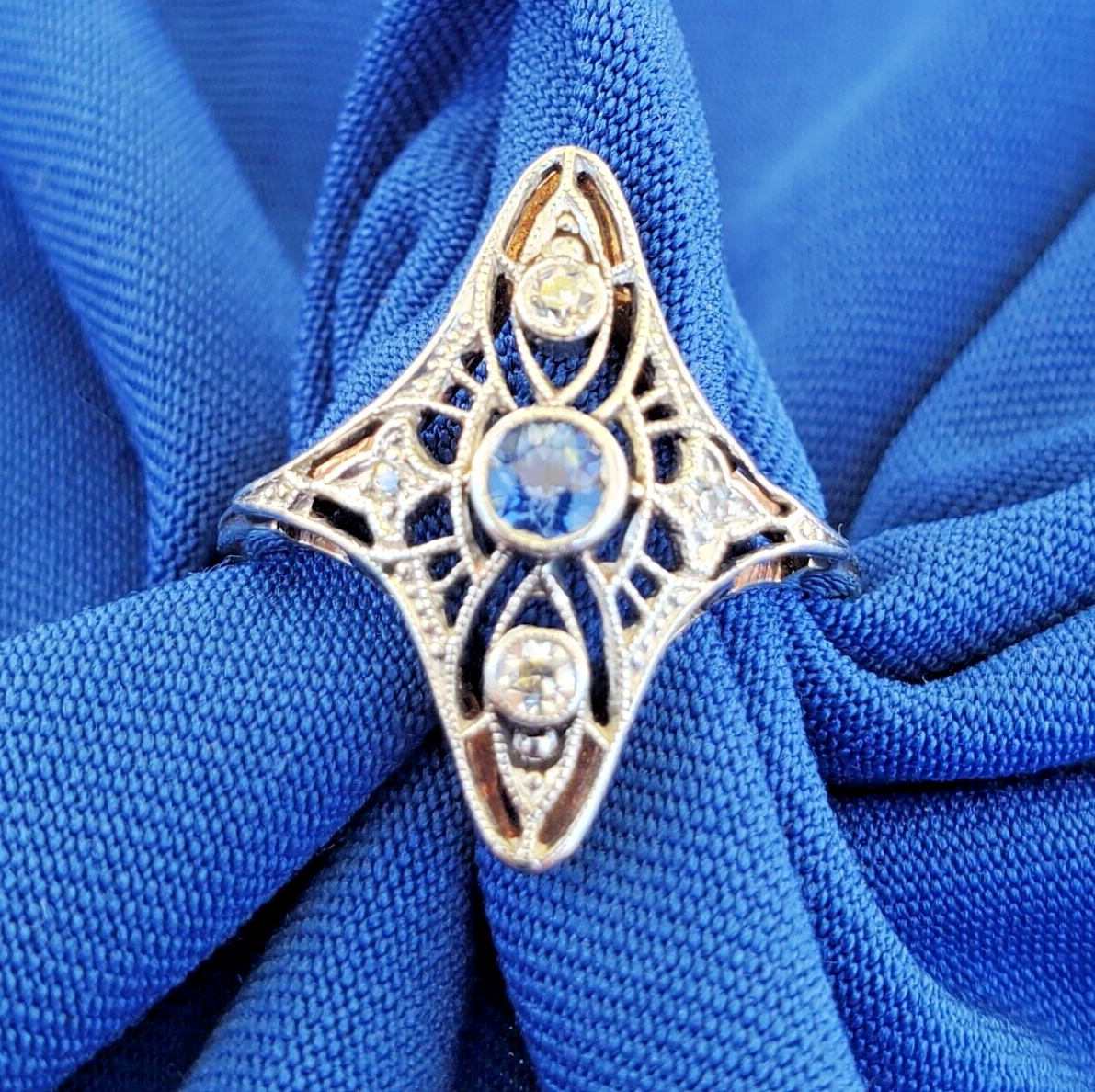 ESTATE SAPPHIRE DIAMOND ENGAGEMENT GATSBY ERA RING.