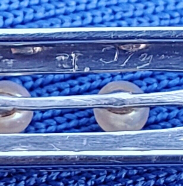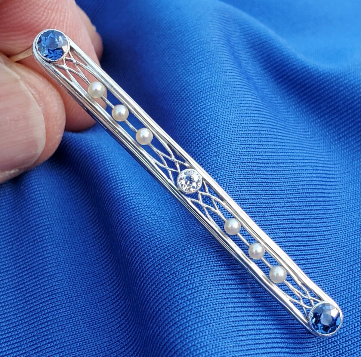 Earth mined Sapphire Diamond Pearl Deco Bar Pin Vintage Antique Platinum Brooch