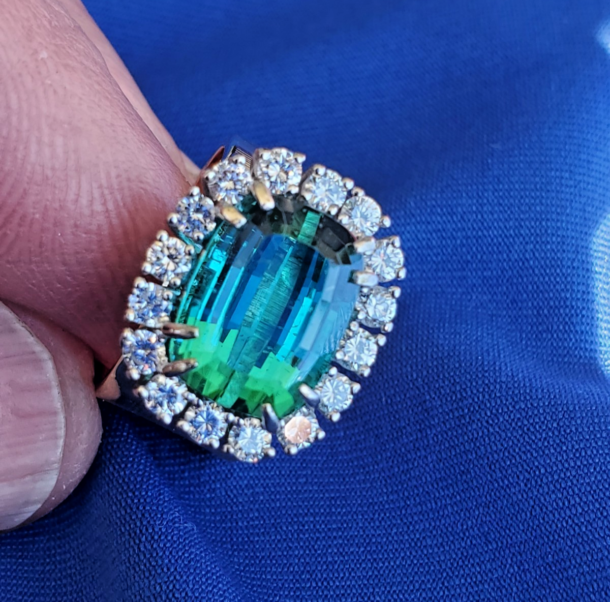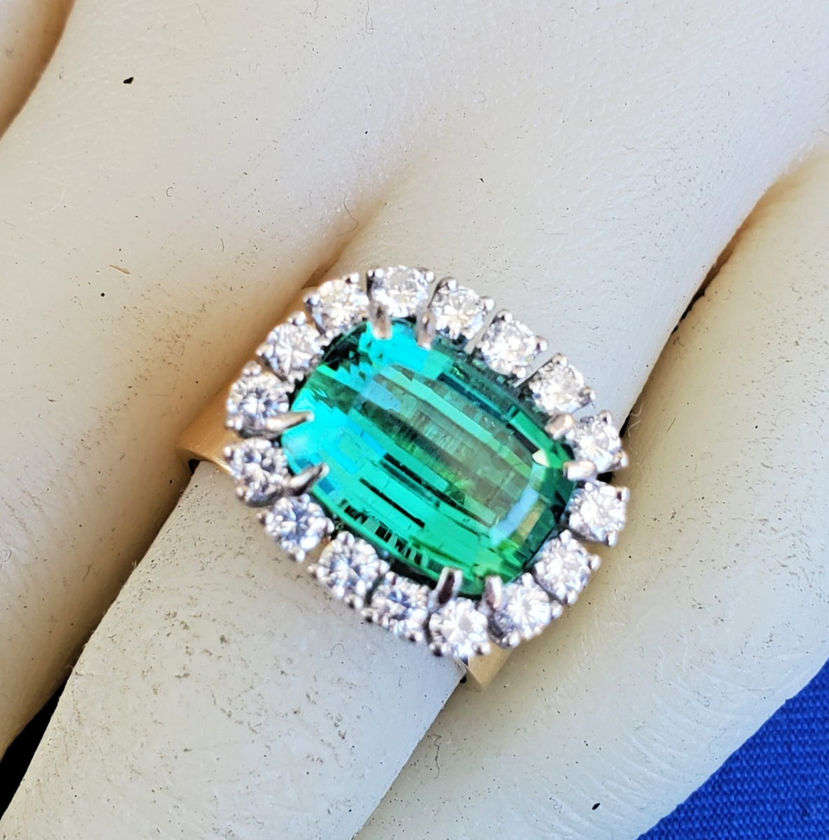 - Earth mined Sea foam Blue Green Tourmaline Diamond Designer Deco Style Ring