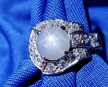 Earth mined Star Sapphire Diamond Deco Engagement Ring Solid 14k White Gold