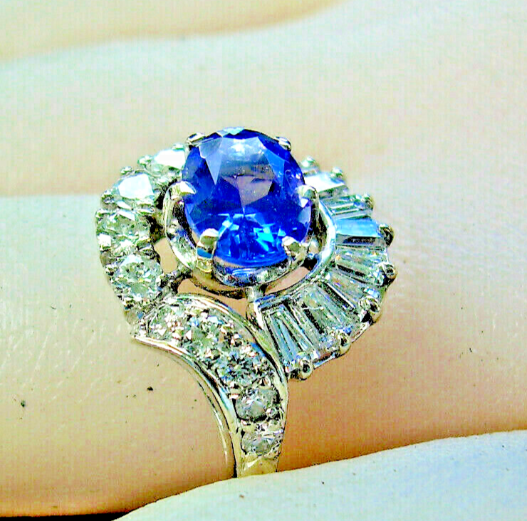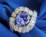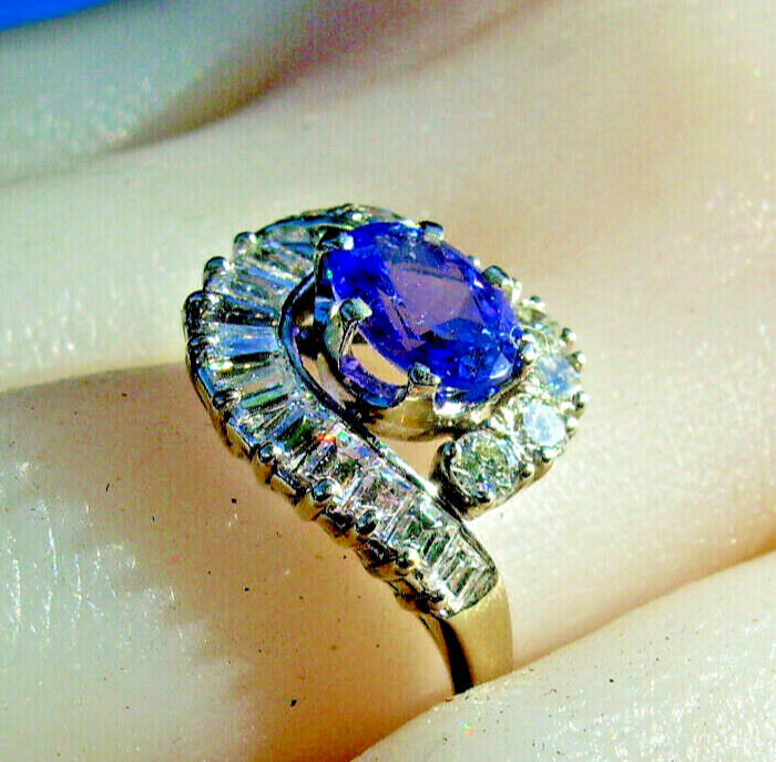 NATURAL TANZANITE DIAMOND DECO 14K ENGAGEMENT STATEMENT RING.