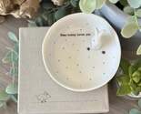The white porcelain dish features a flowing ?wobbly? rim and features the intriguing design of a three-dimensional bunny inside the dish. The interior is decorated with dainty black polka dots as well as the loving words; 'Some Bunny Loves You?.