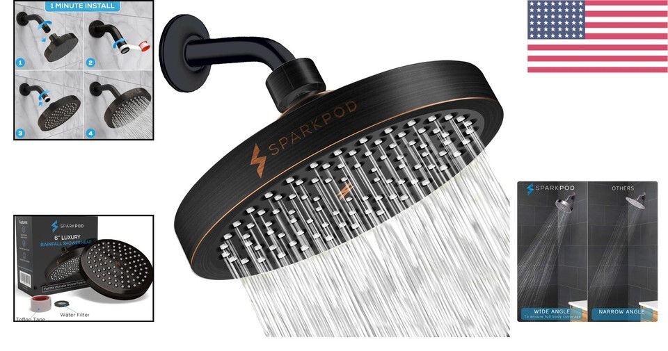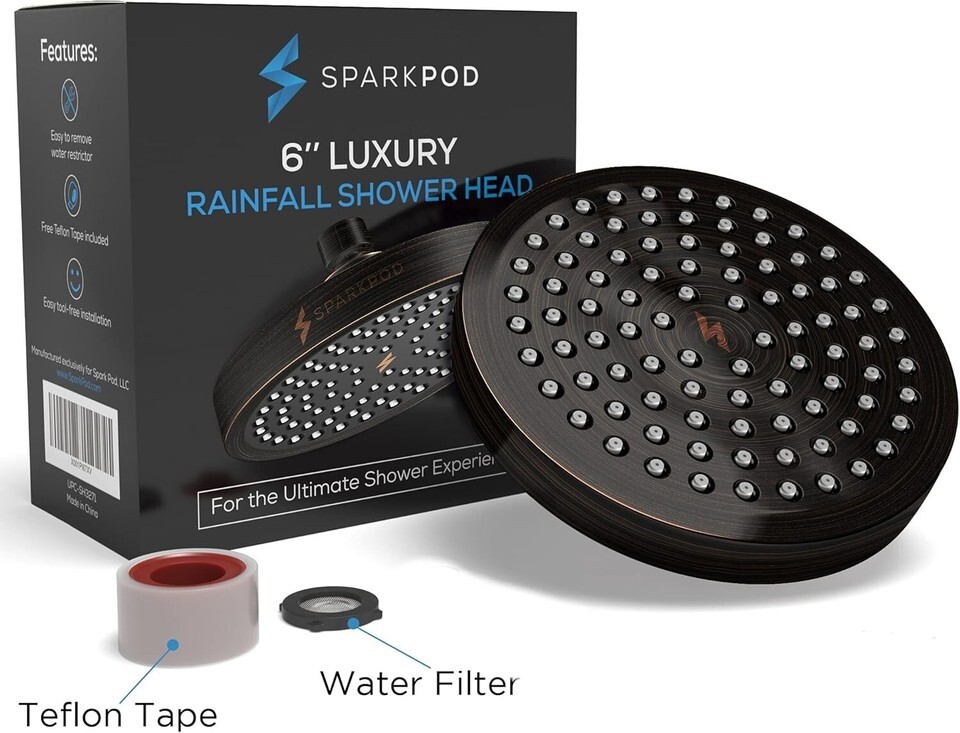 - Easy Install 6-Inch High Pressure Rainfall Shower Head - Elegant Bronze Design