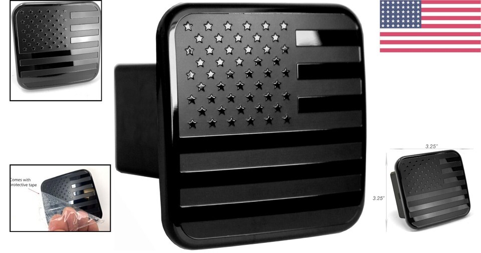- Easy-Install Black Metal Hitch Cover - Fits 2" Receivers, Stylish Flag Design
