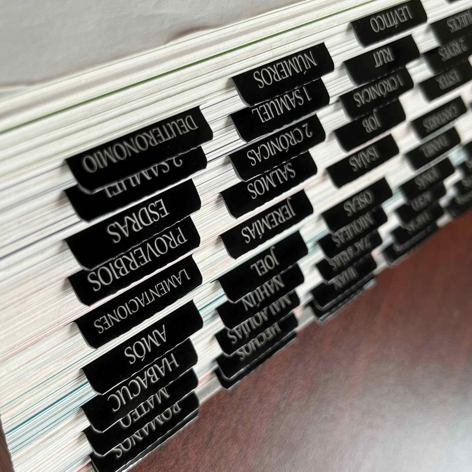 Easy to Read Spanish Laminated Bible Tabs - 80 Customizable & Durable Stickers