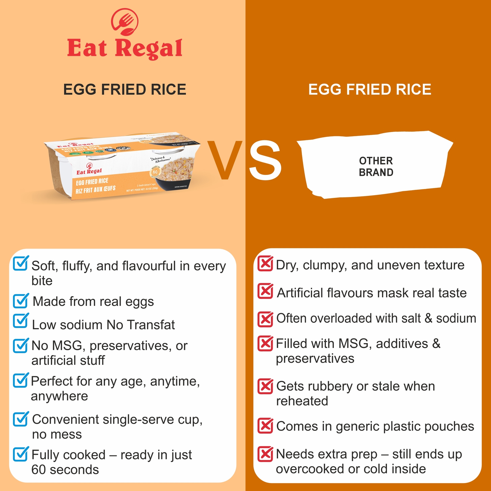 - Eat Regal Gourmet Egg Fried Rice Flavored Rice, 2 Individual Cups, Pack of 6, Re