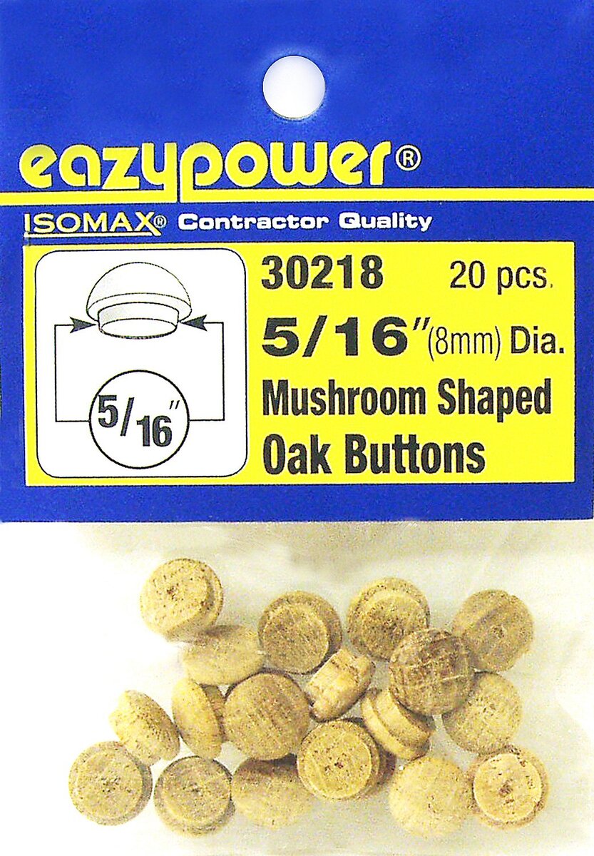 Eazypower 30218 5/16" Oak Mushroom Shaped Buttons (20 Piece)
