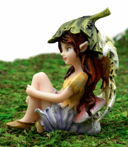 ? In this beautiful garden of enchantment, this yellow dahlia fairy is sitting with her legs crossed thinking about her lover. Buy her to complete your dollhouse fairy garden miniature collection!
